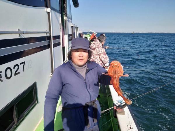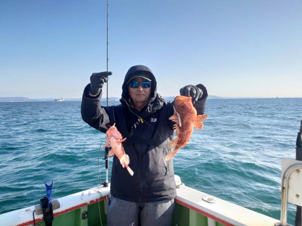 後半鬼カサゴ、潮流れ出すとポツリ~! 単発ながら型見えました^_^