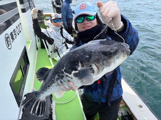 釣果は昨日と変わらずでしたが今日はトラフグが多く混じりゲットした方はニコニコでした〜。