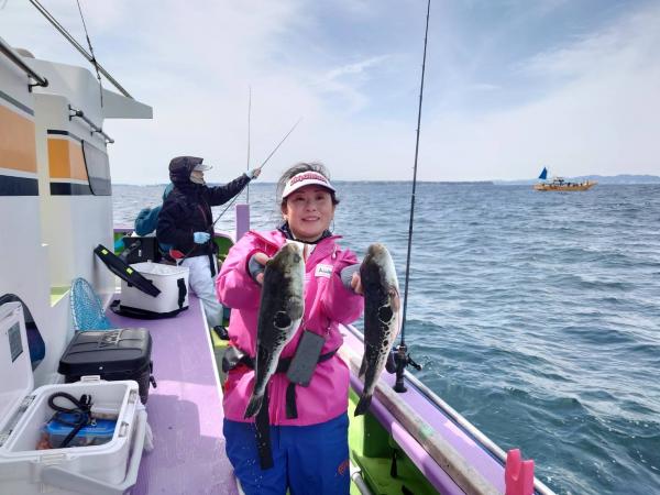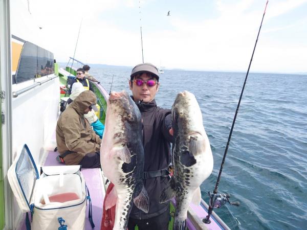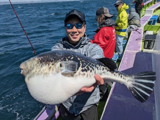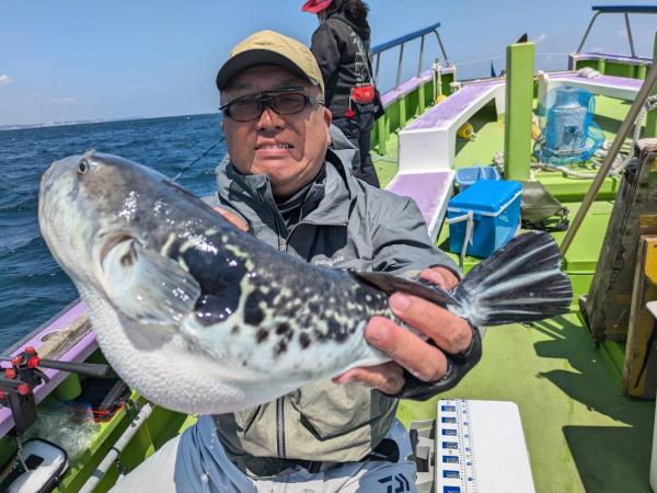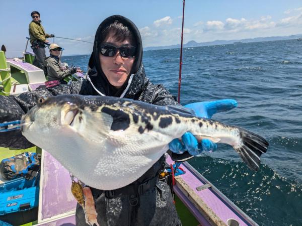 ベタ凪の釣り日和! トラフグもポツリーポツリ 間あいてー またポツリーと。