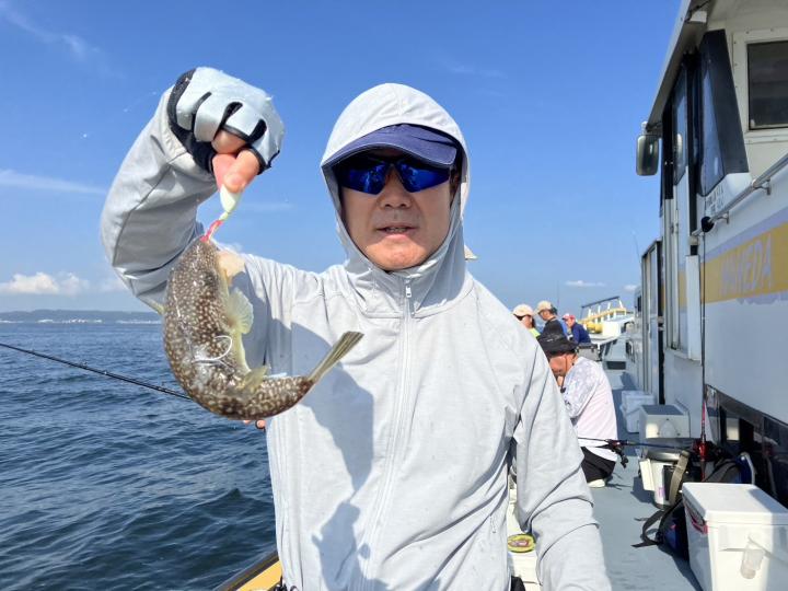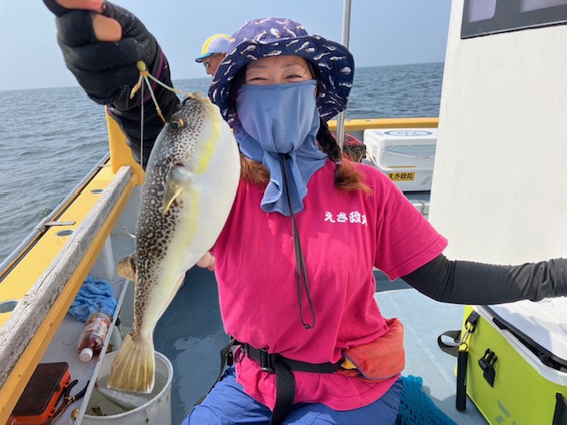 今日もスペシャルゲストにトラフグ、マダコ、カワハギ、ヒラメも混じりお土産ゲット出来た方はニコニコ。