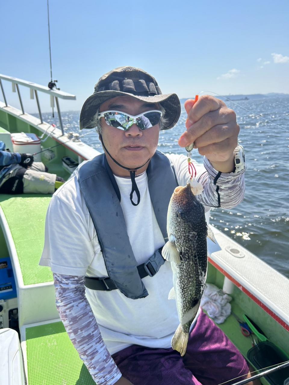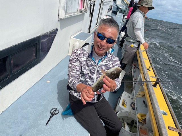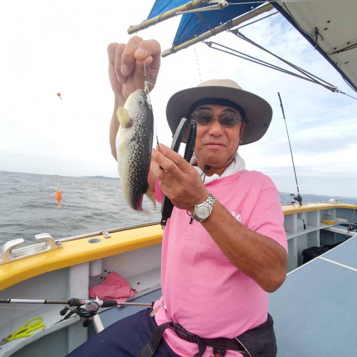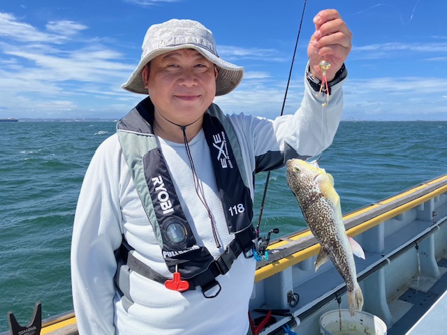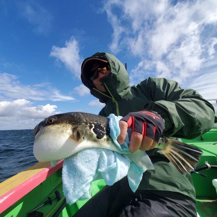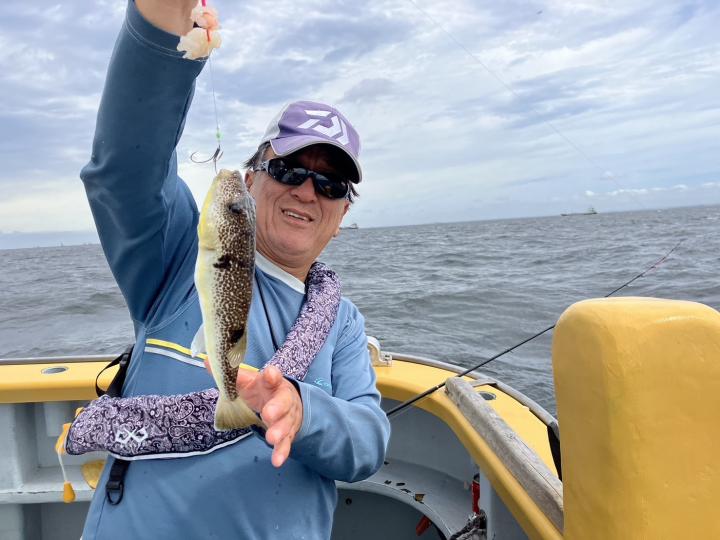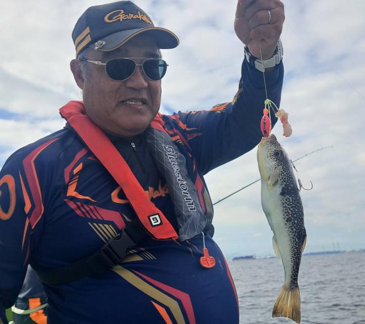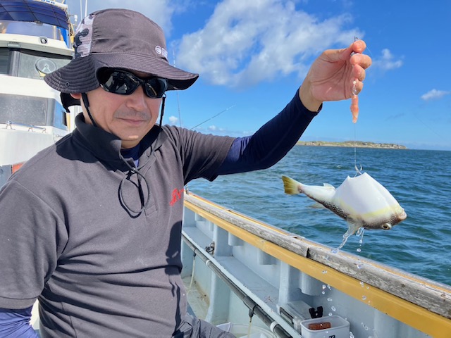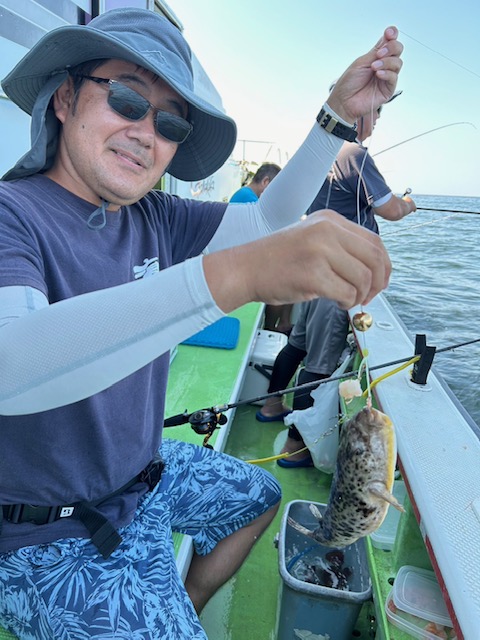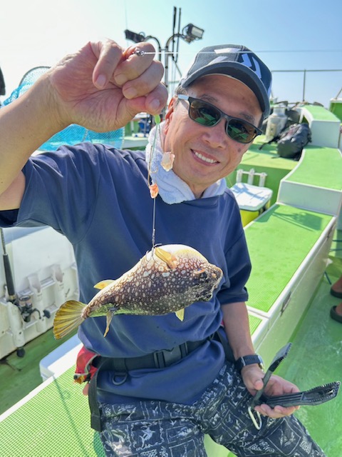 朝から食わせ針を装備してもらい僚船に合流させて頂きました。始めこそサバフグ多かったですが徐々に少なくなりショウサイフグ優勢に。釣れるショウサイフグは中型主体に大型混じりで引き味抜群、プリンプリンの美味そうな身でしたよ。
