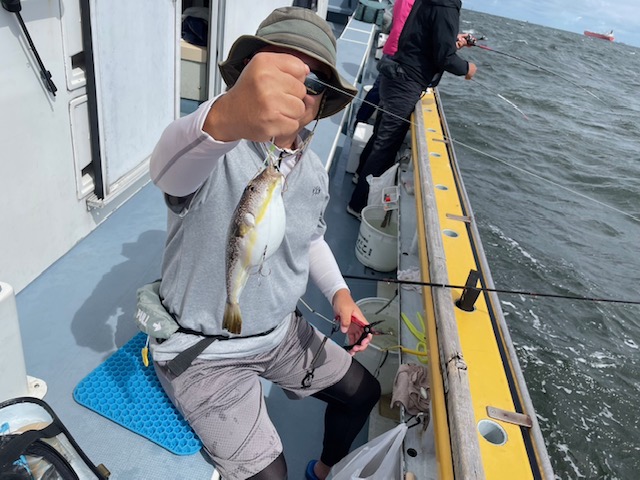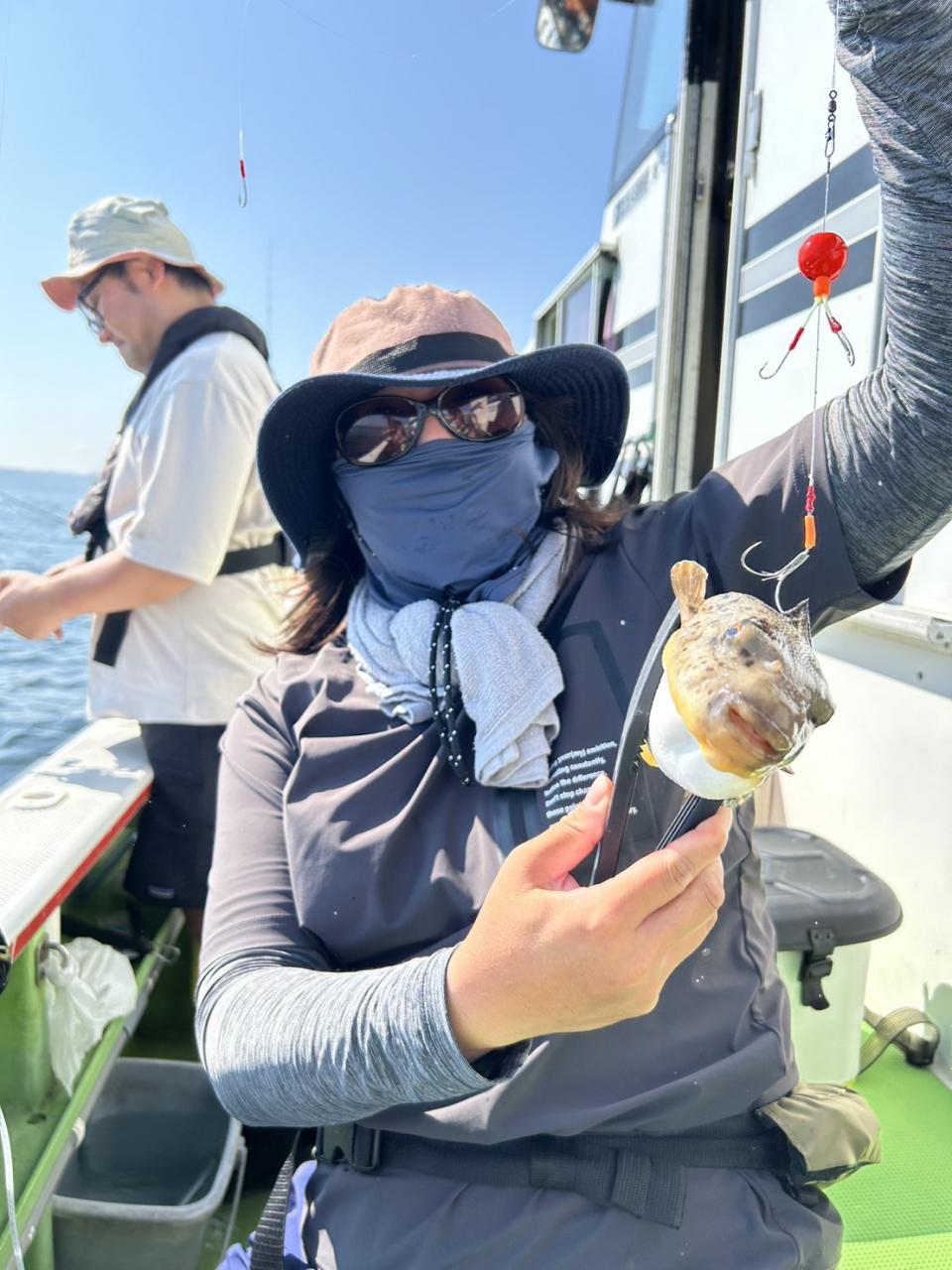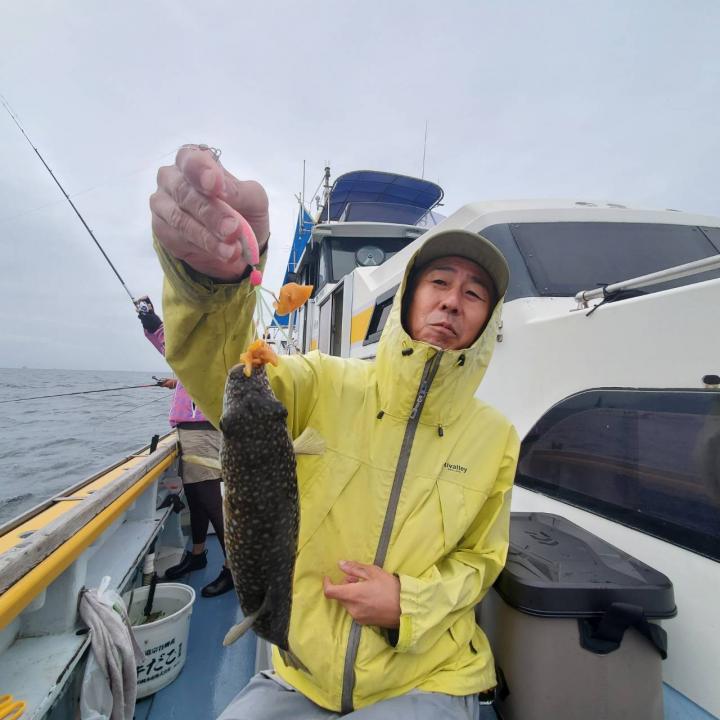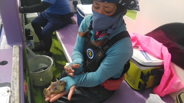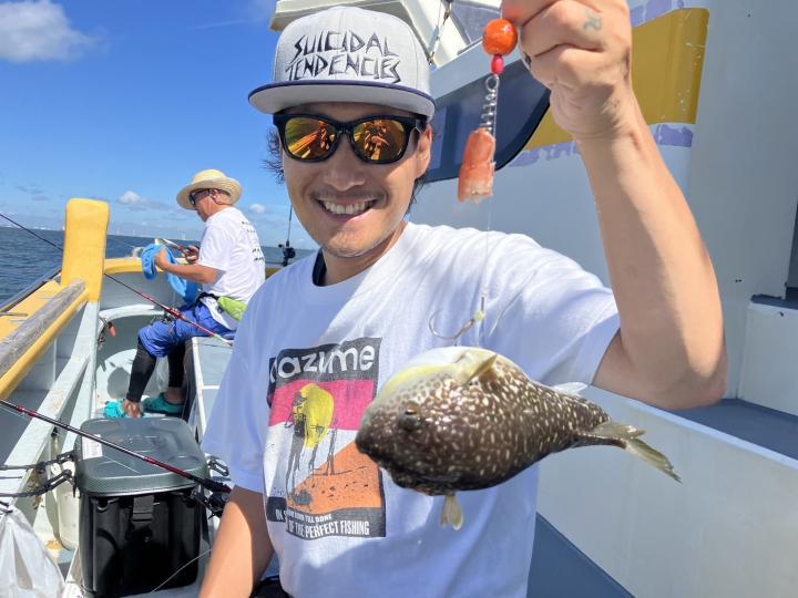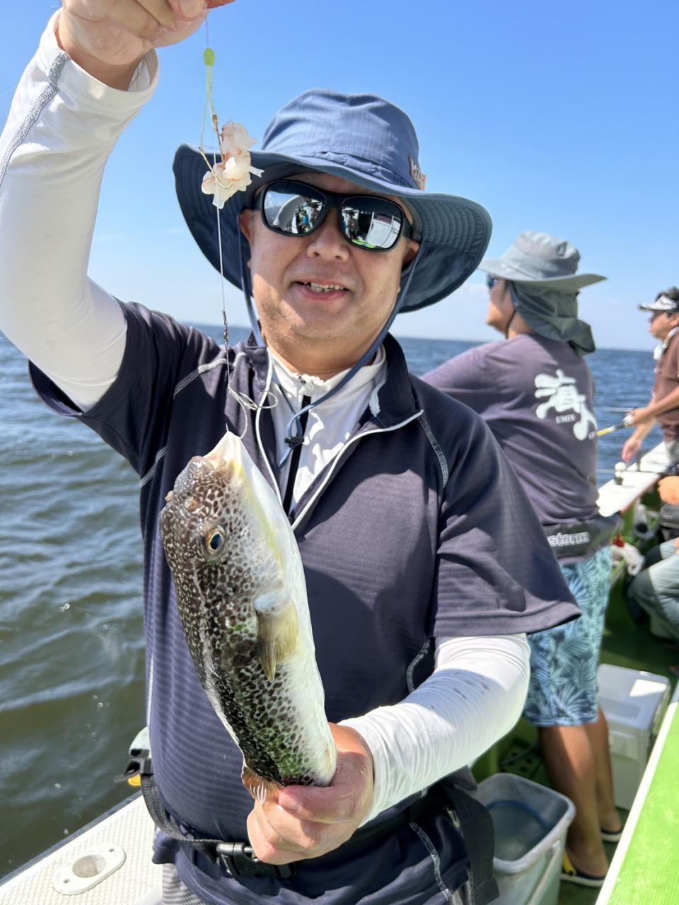 朝から食わせ針を装備してもらい僚船に合流させて頂きました。始めこそサバフグ多かったですが徐々に少なくなりショウサイフグ優勢に。釣れるショウサイフグは中型主体に大型混じりで引き味抜群、プリンプリンの美味そうな身でしたよ。