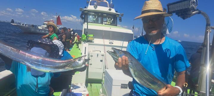 今日は台風が心配されていた中、大勢のお客様にお越しいただき2隻で出船できました。