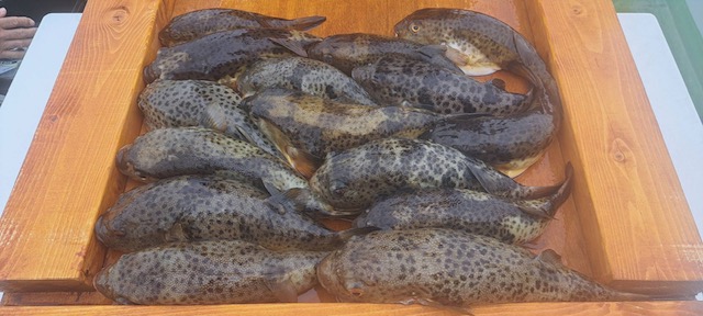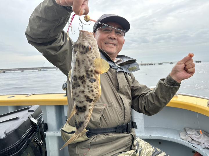 定番ポイントを転々と探ってみました。広く浅く居るのか?空振りポイントもありでドキドキでしたが皆様の集中力に助けられてほとんどの方がご対面出来ました。中型主体に大型混じり、小型少々にコモンフグも釣れました。