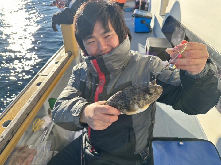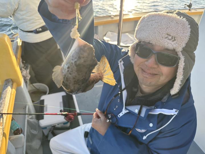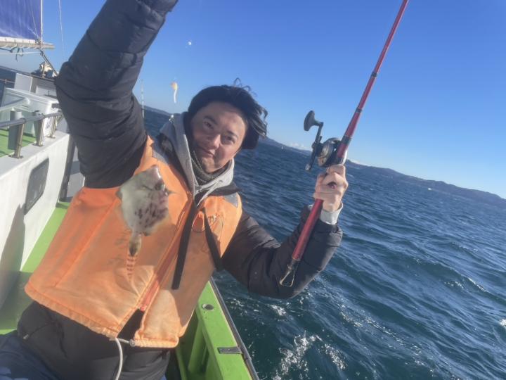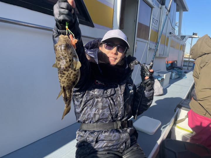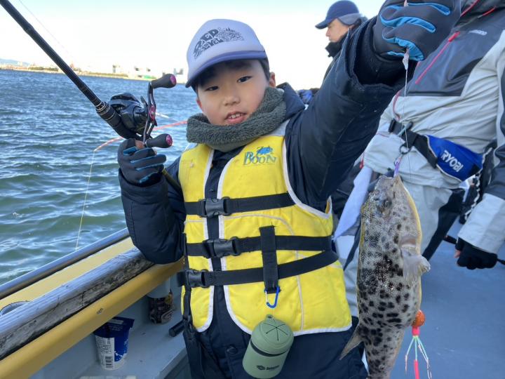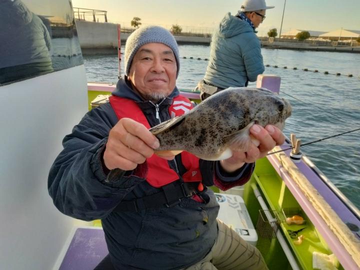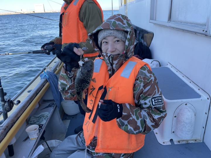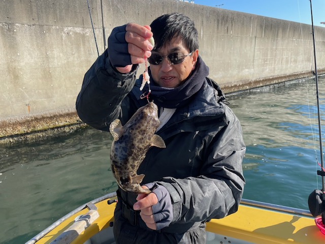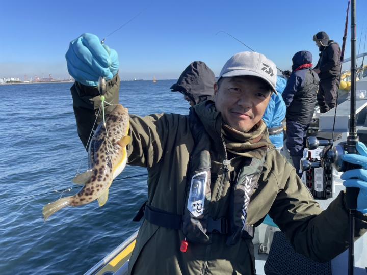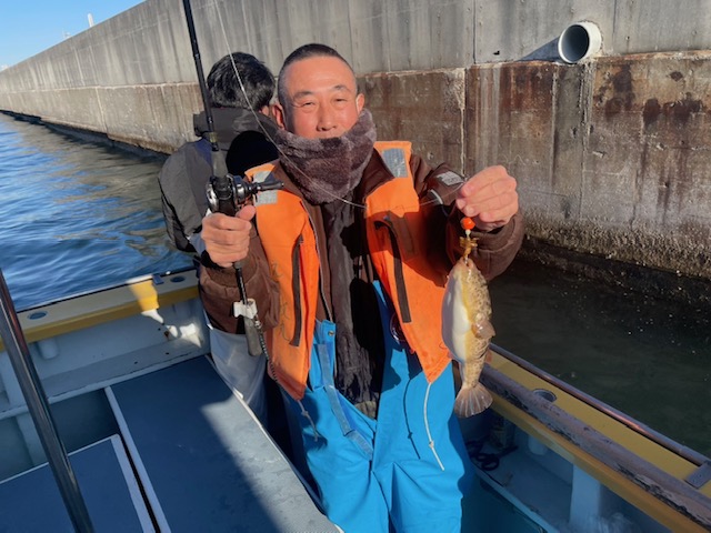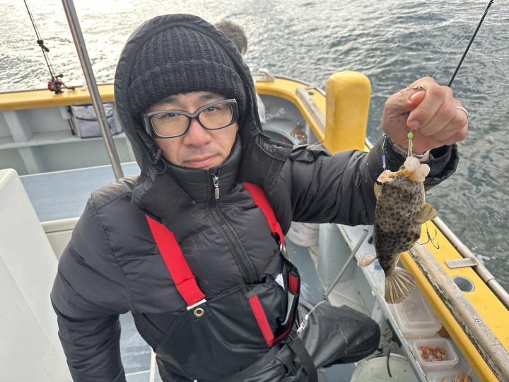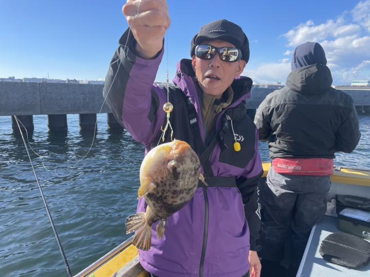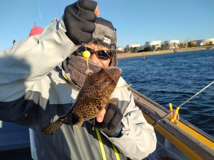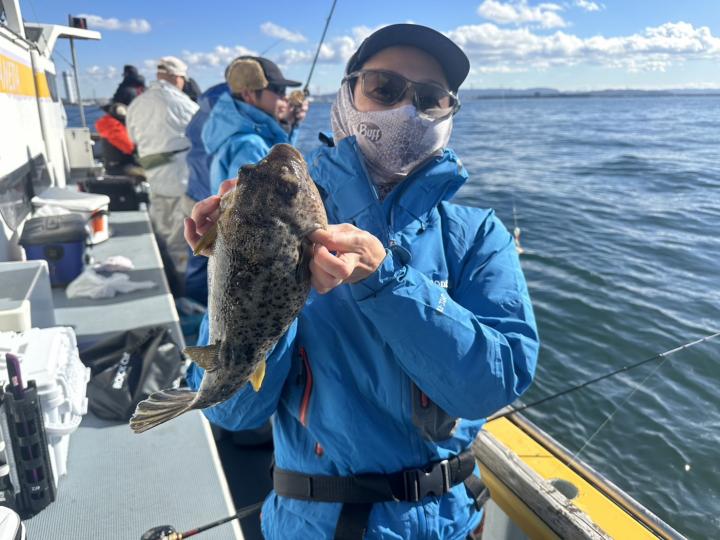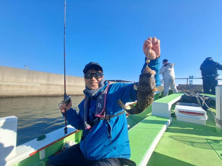 開始早々、フグ釣り初挑戦のお客様がゲット〜!いきなりテンション上がりました。その後はどうにか型を見る程度でアッチコッチ探索しましたが良い所なく全員ゲットならずスミマセンでした。