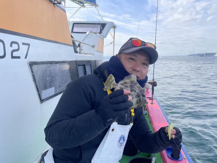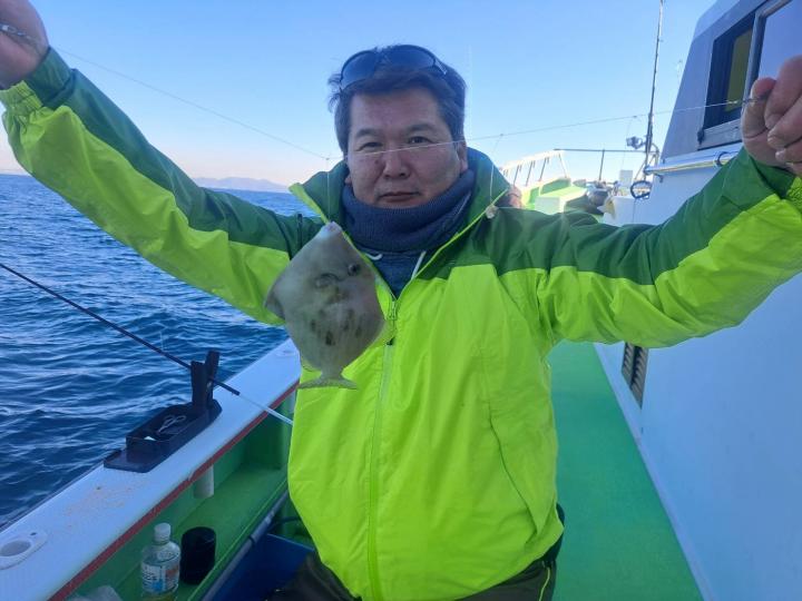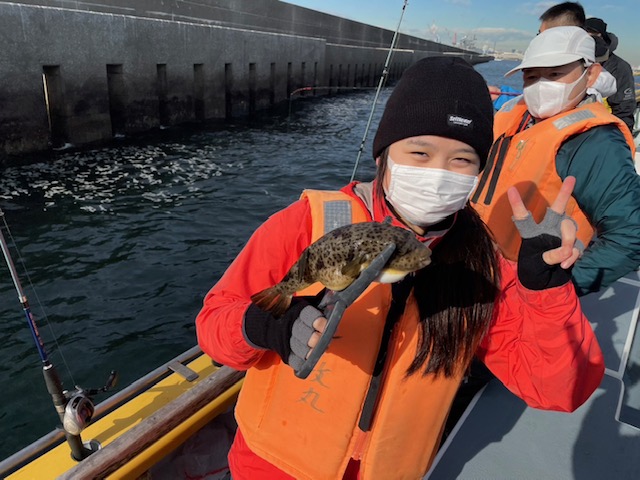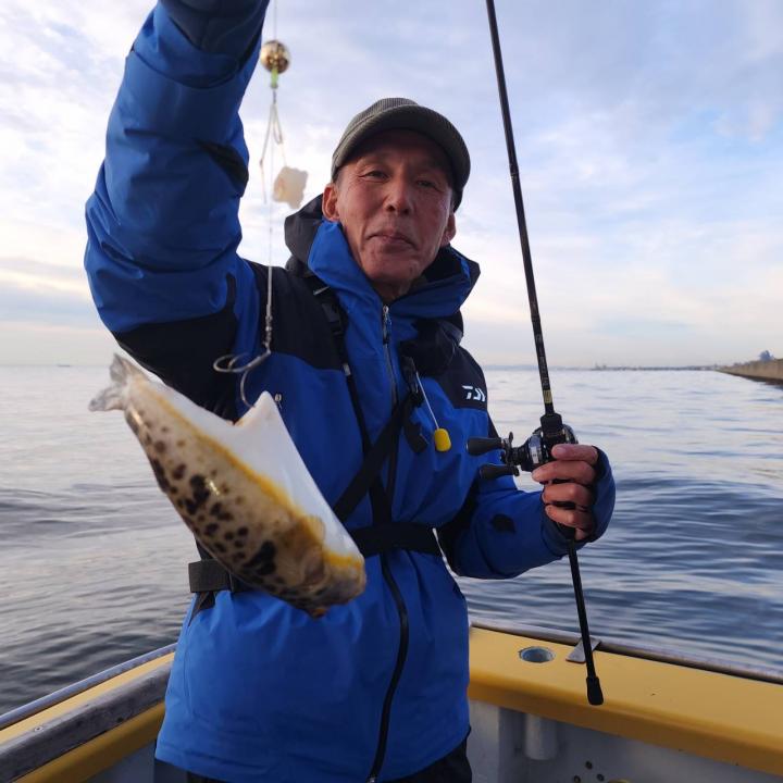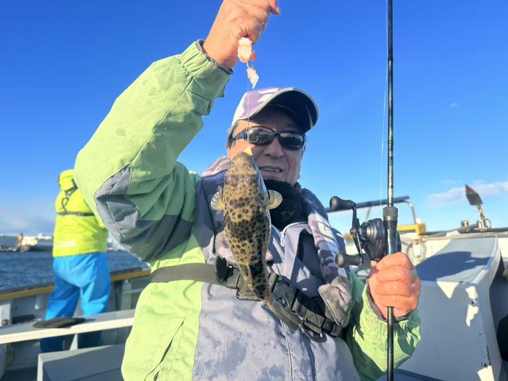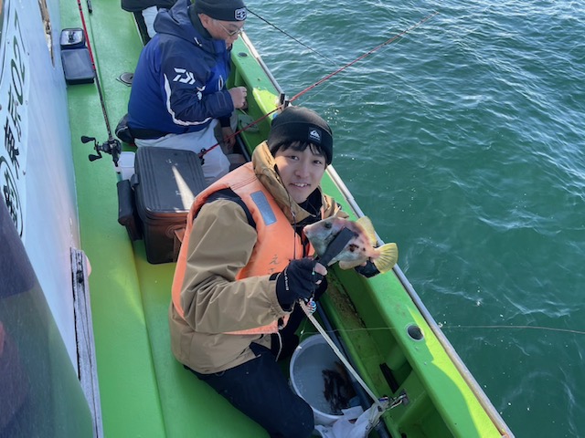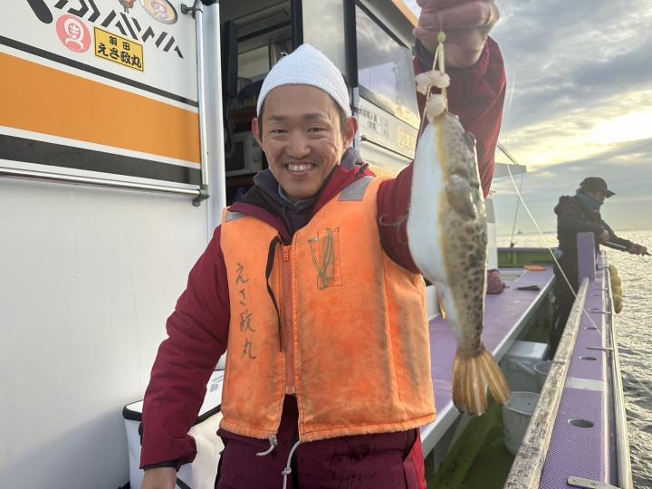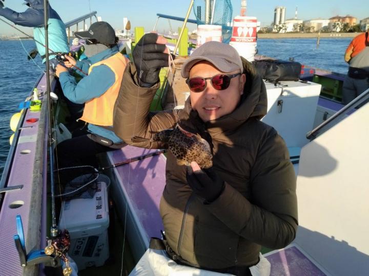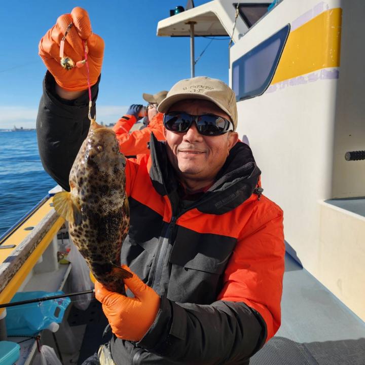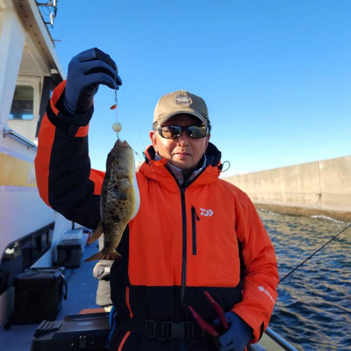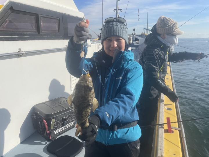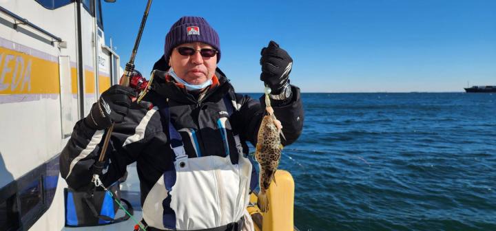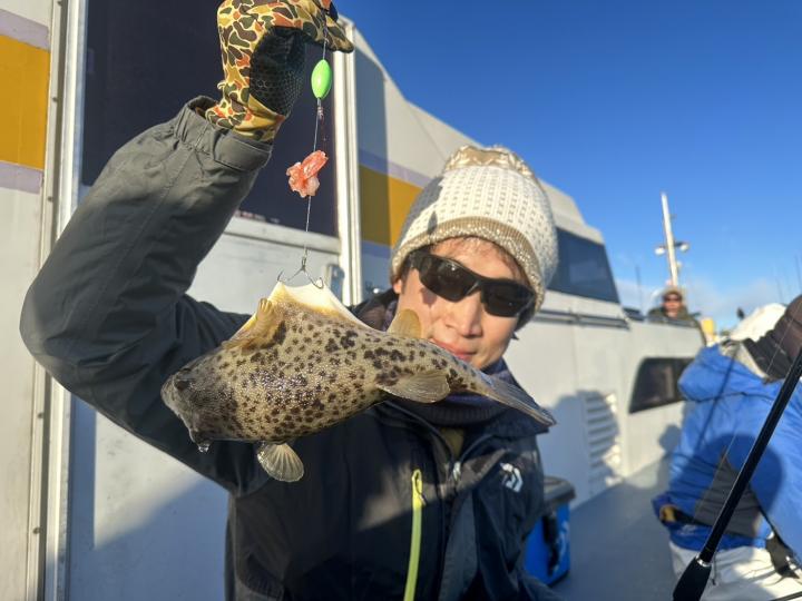 開始早々、フグ釣り初挑戦のお客様がゲット〜!いきなりテンション上がりました。その後はどうにか型を見る程度でアッチコッチ探索しましたが良い所なく全員ゲットならずスミマセンでした。