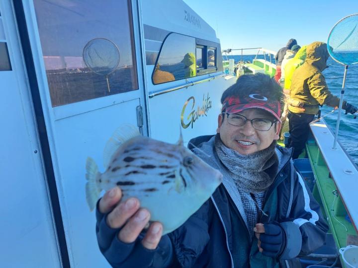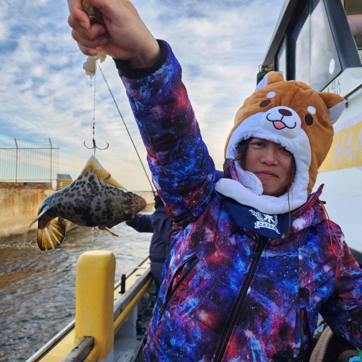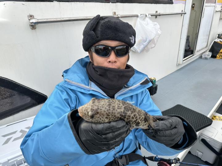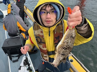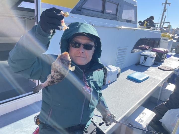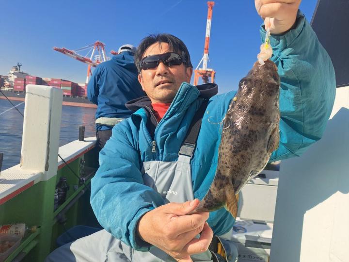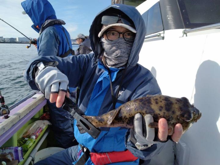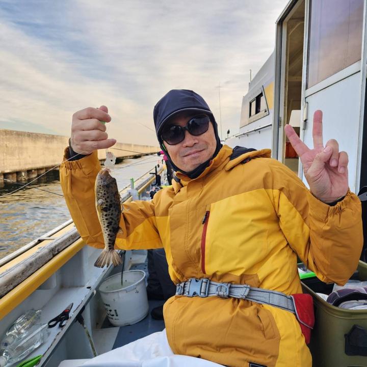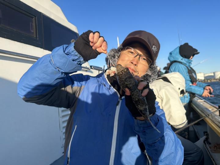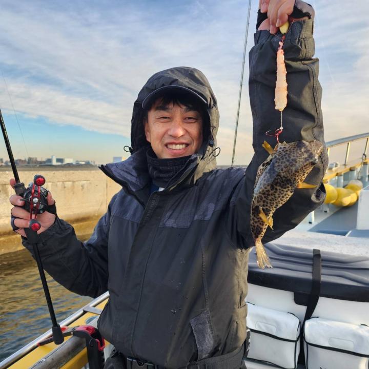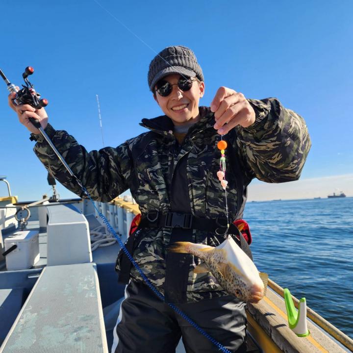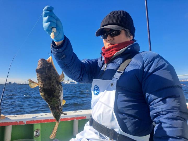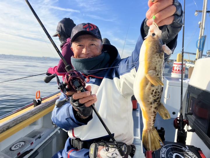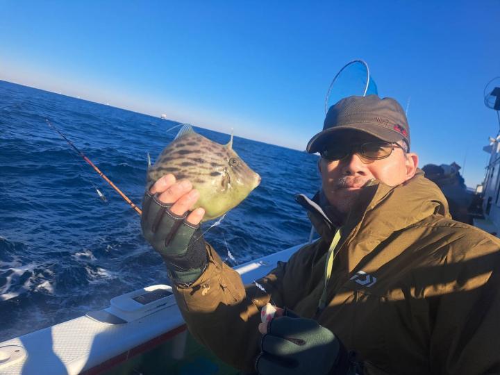 開始早々、フグ釣り初挑戦のお客様がゲット〜!いきなりテンション上がりました。その後はどうにか型を見る程度でアッチコッチ探索しましたが良い所なく全員ゲットならずスミマセンでした。