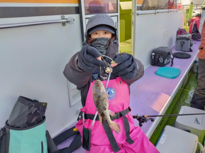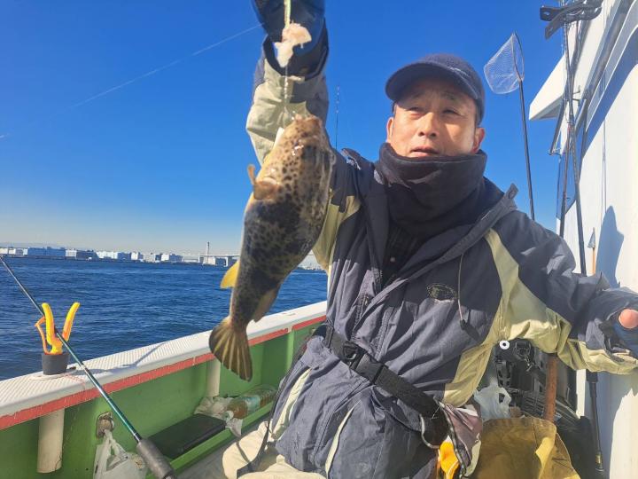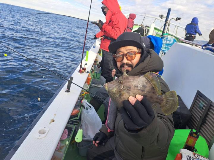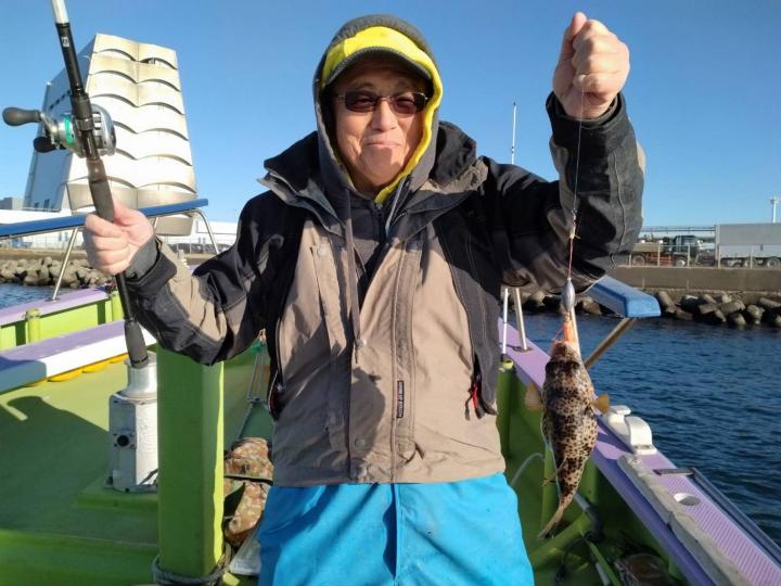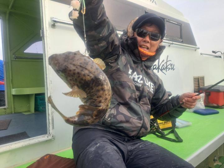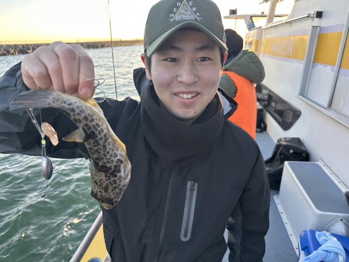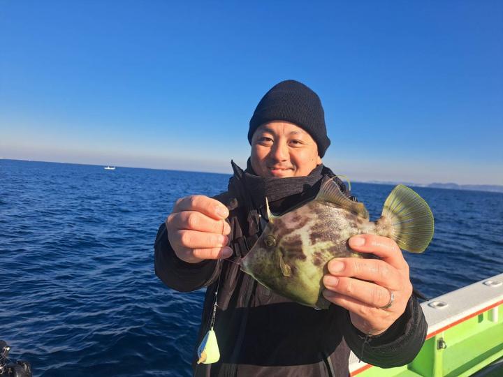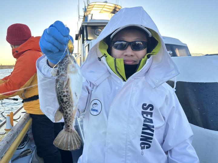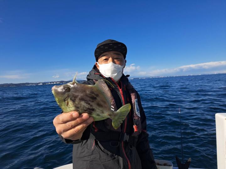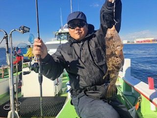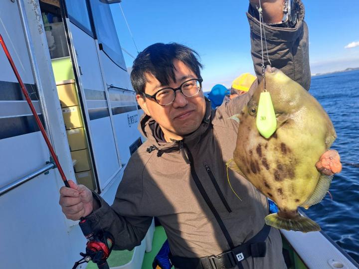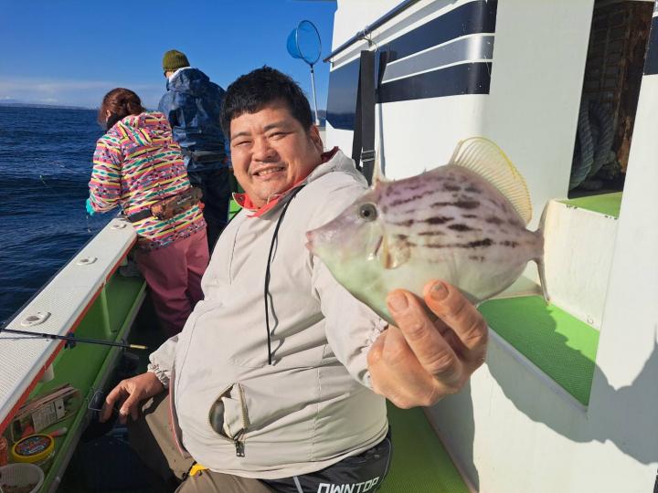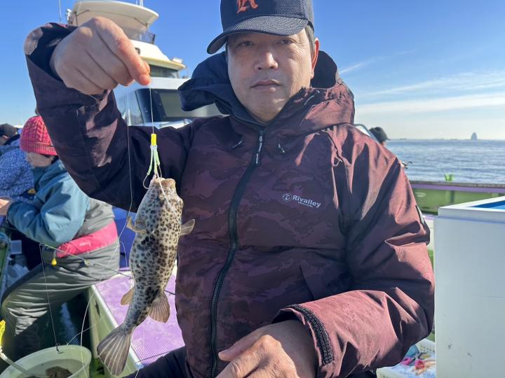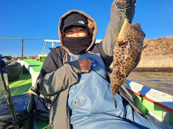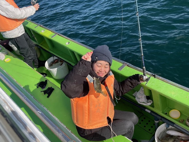 開始早々、フグ釣り初挑戦のお客様がゲット〜!いきなりテンション上がりました。その後はどうにか型を見る程度でアッチコッチ探索しましたが良い所なく全員ゲットならずスミマセンでした。