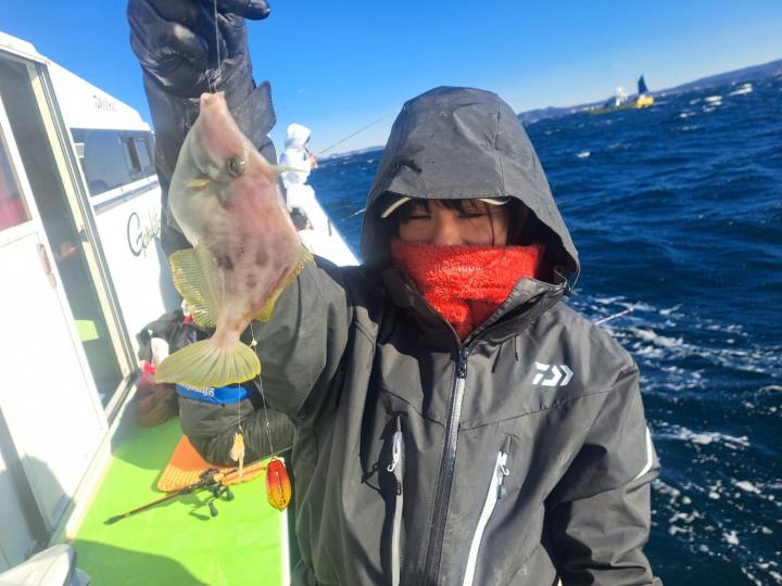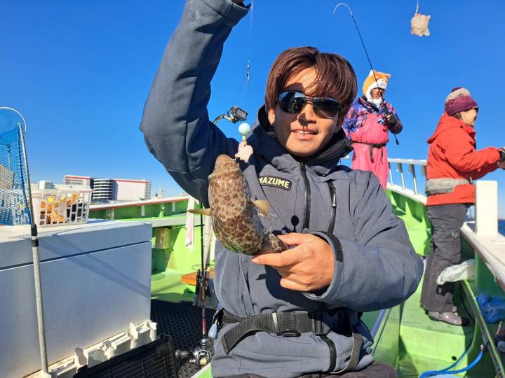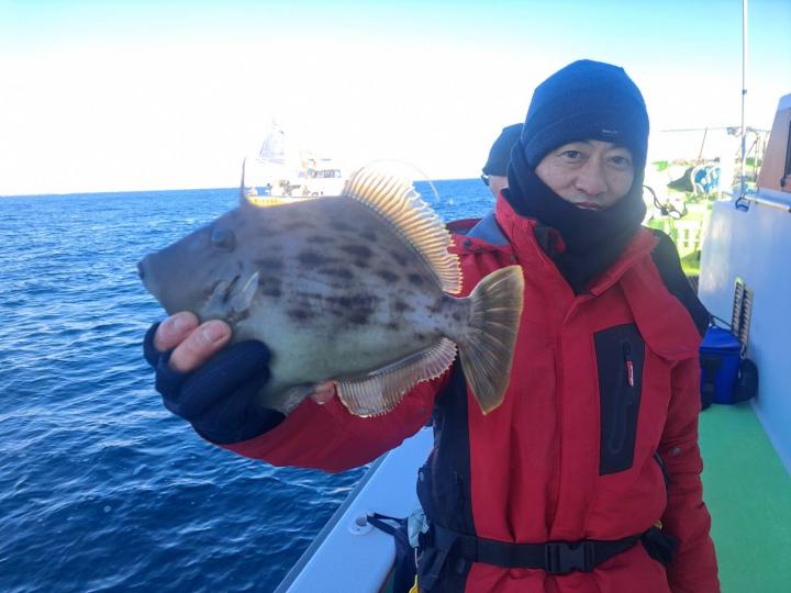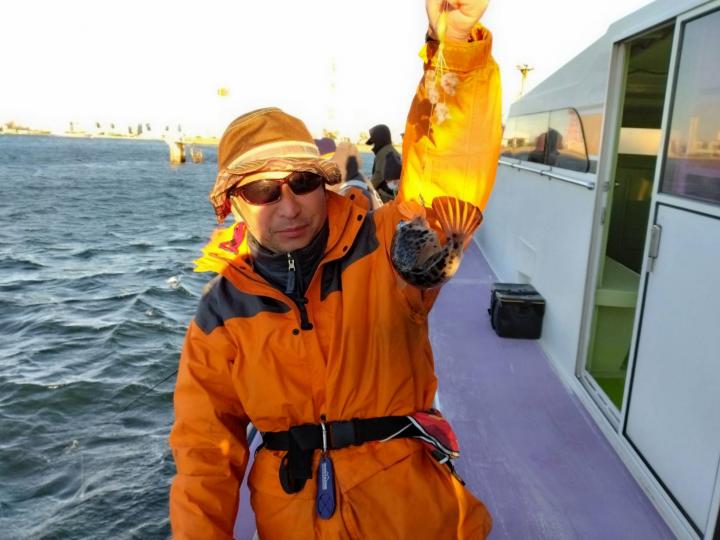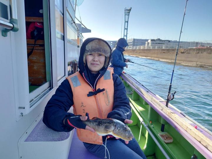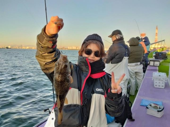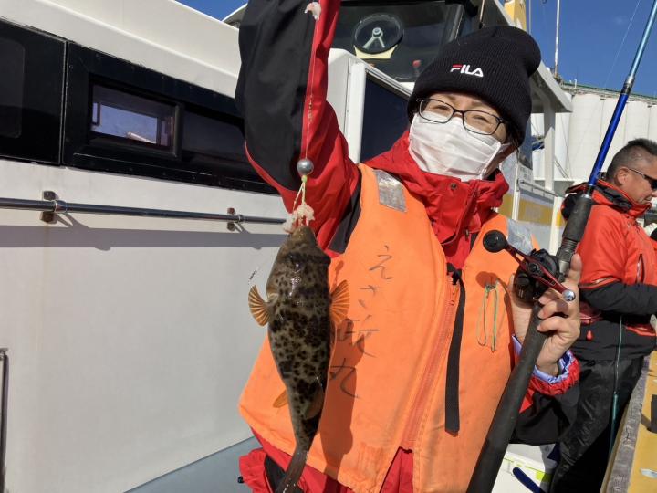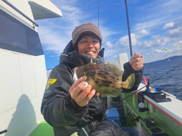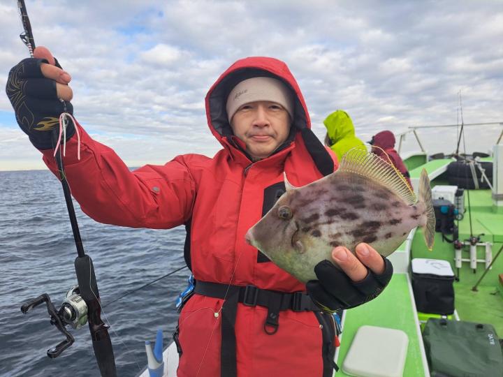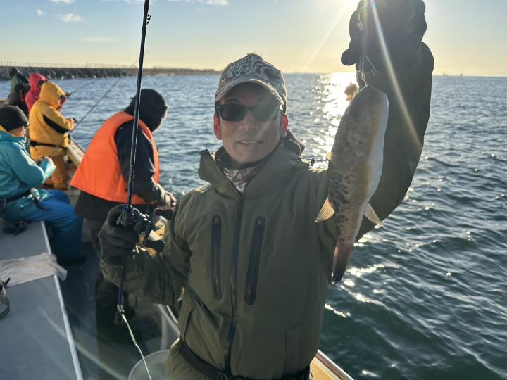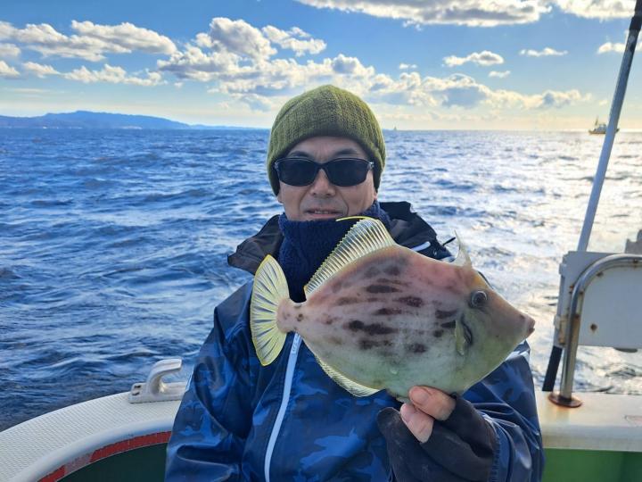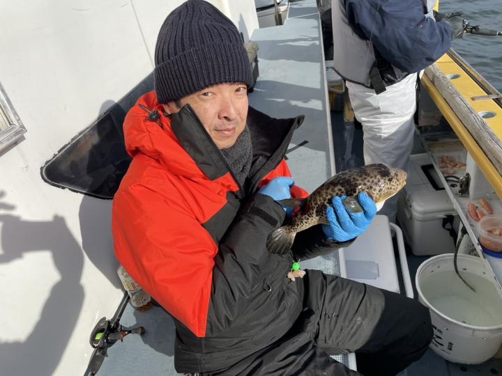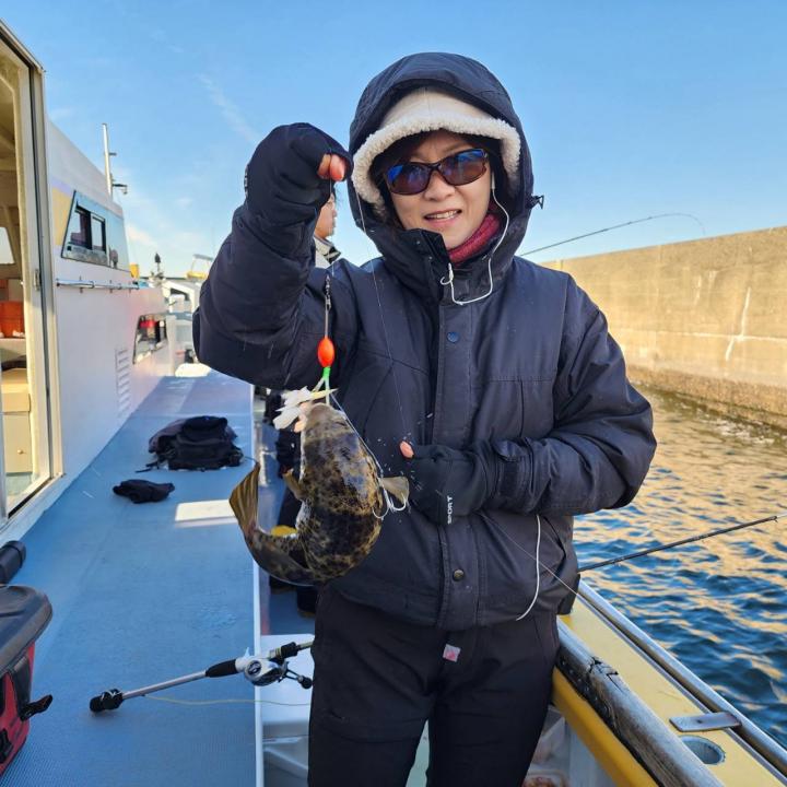 開始早々、フグ釣り初挑戦のお客様がゲット〜!いきなりテンション上がりました。その後はどうにか型を見る程度でアッチコッチ探索しましたが良い所なく全員ゲットならずスミマセンでした。