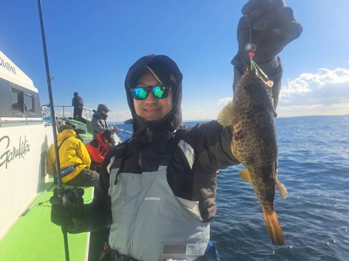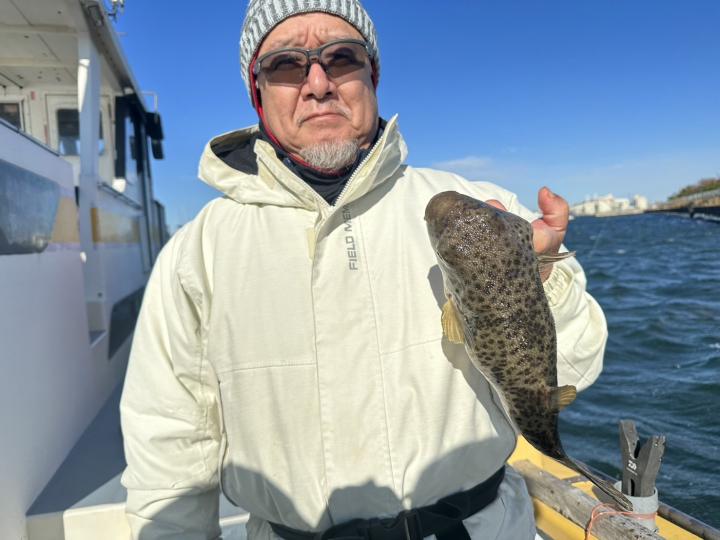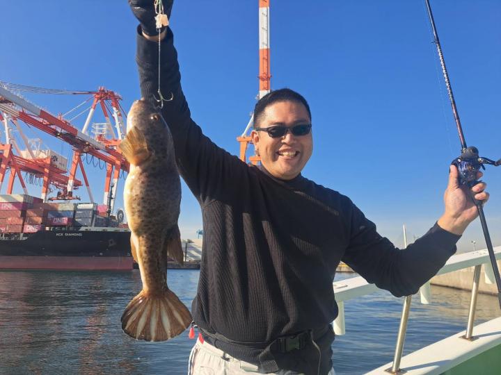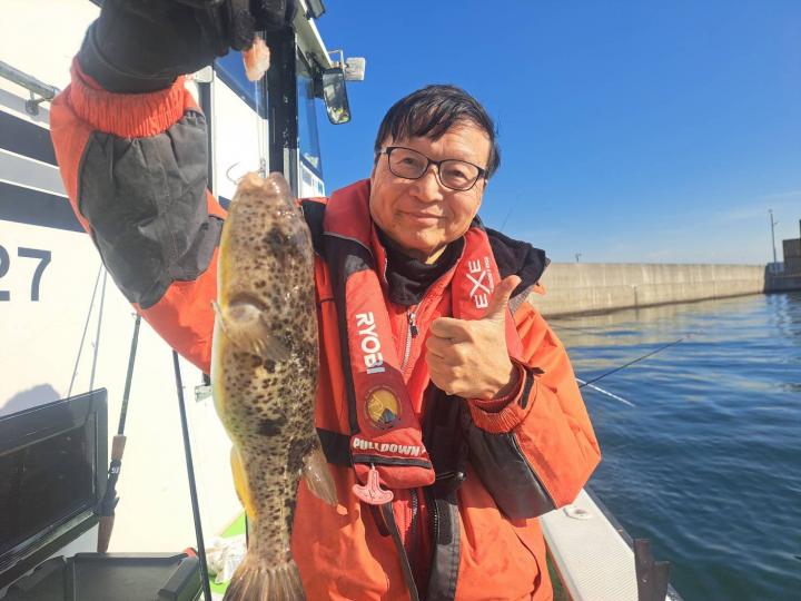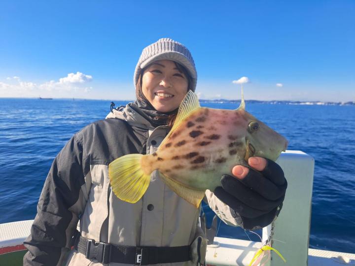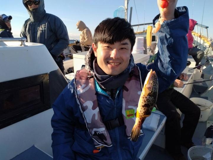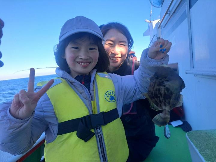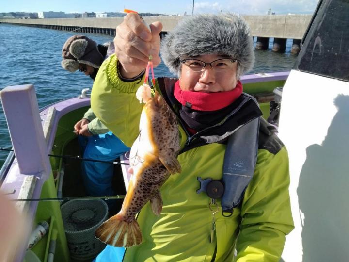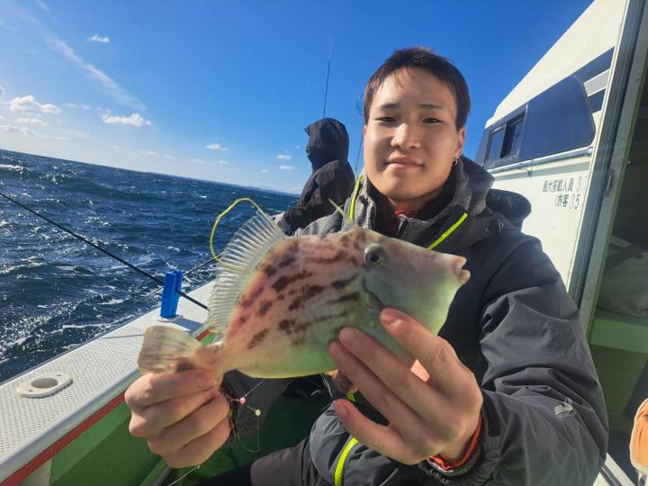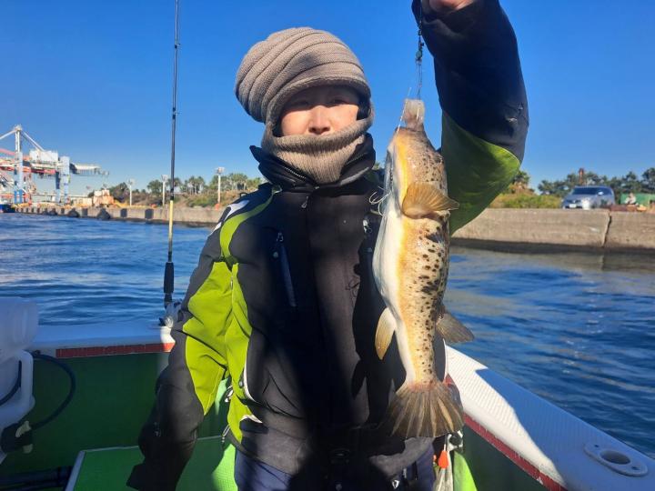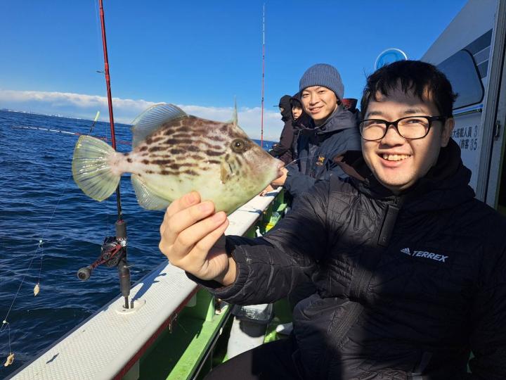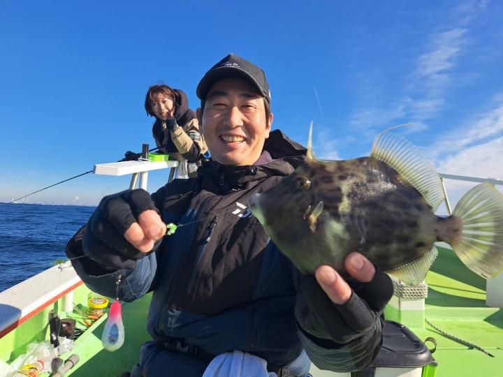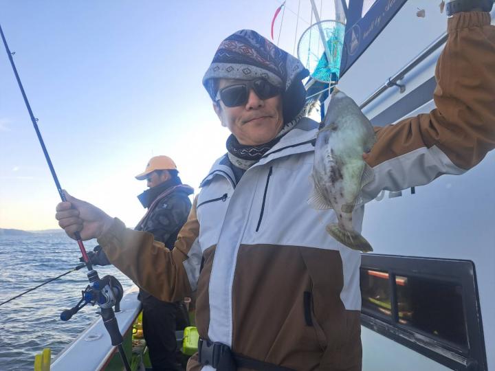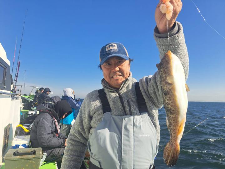 開始早々、フグ釣り初挑戦のお客様がゲット〜!いきなりテンション上がりました。その後はどうにか型を見る程度でアッチコッチ探索しましたが良い所なく全員ゲットならずスミマセンでした。