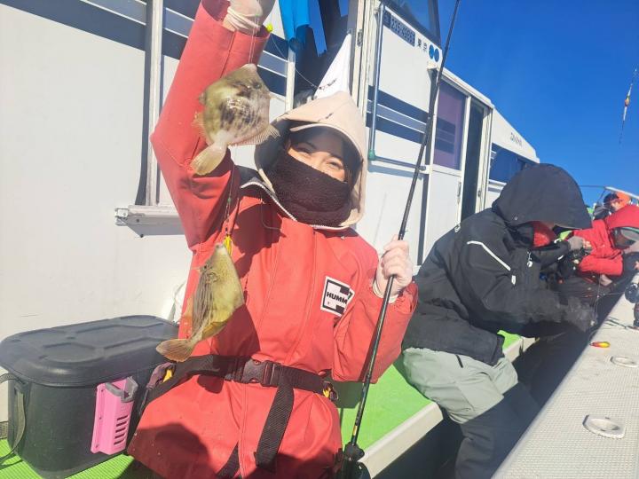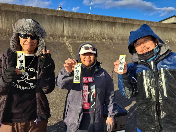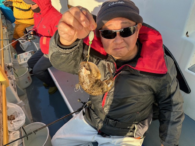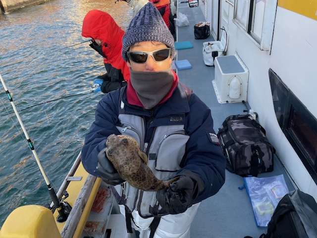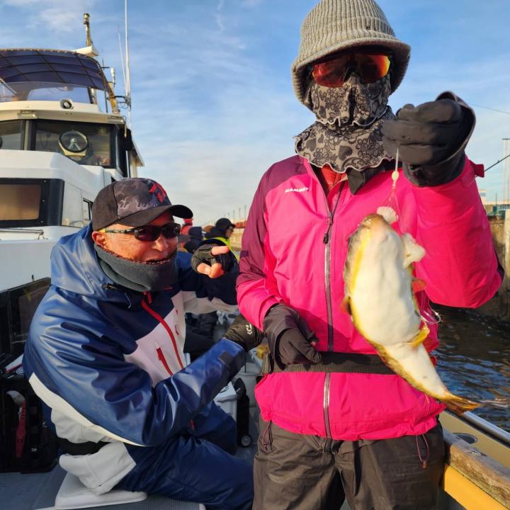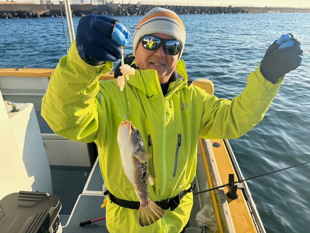 今日は一日中北風強く寒い中皆様に頑張って頂きました。各所でフグちゃんの生体反応はあって場所よっては大型率高く釣った方はニコニコでしたが全員ゲットならずスミマセンでした。ん〜難しいですねぇ。