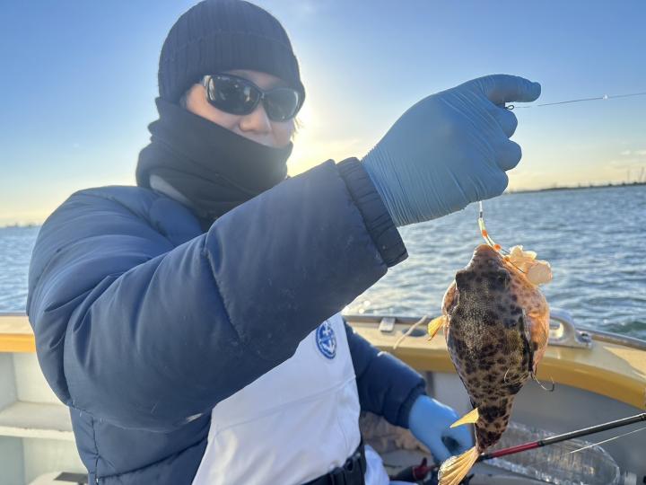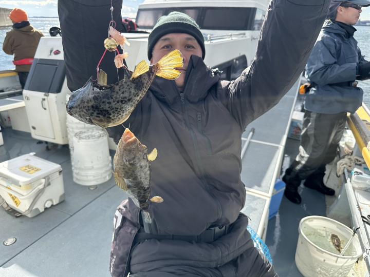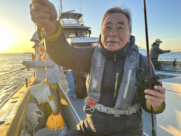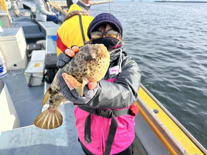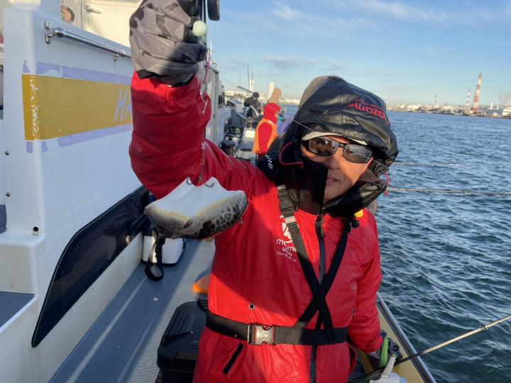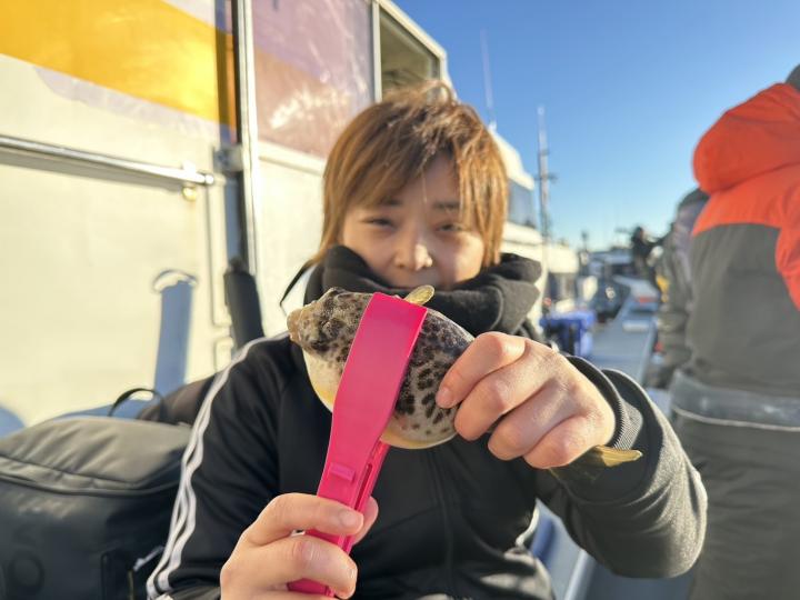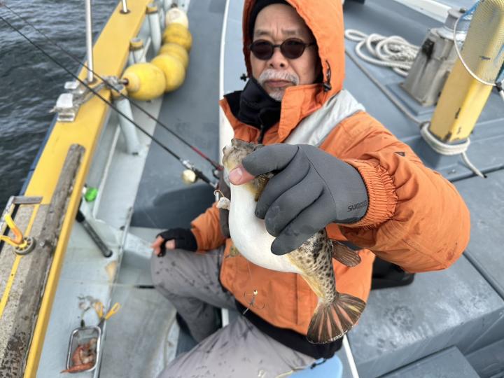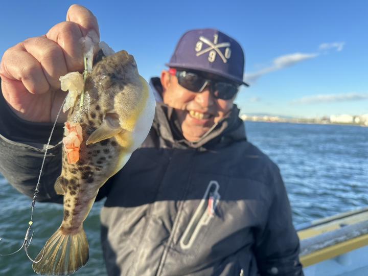 釣れるフグは良型主体で大型混じりで重量感たっぷり。
