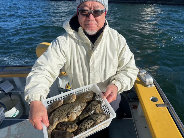 今日は今年最後のフグの日(29日)、満席で出船出来ました。ありがとうございました。