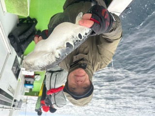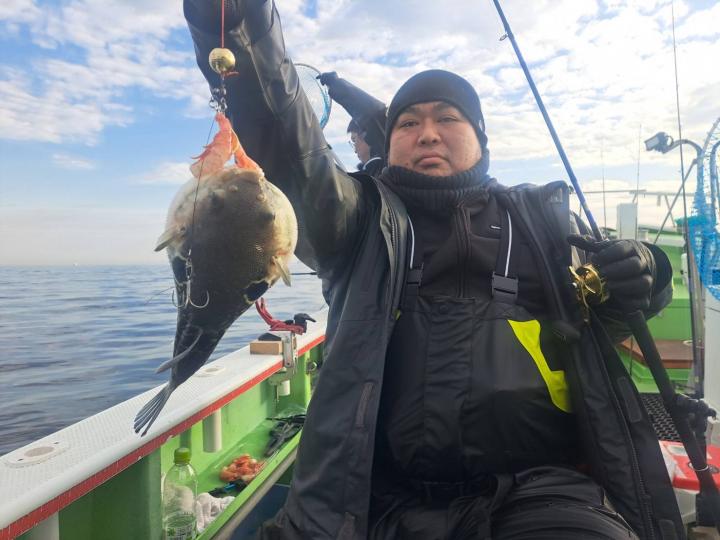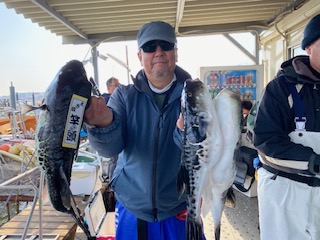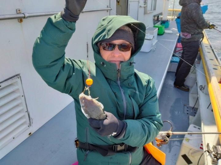 すぐに1匹釣れ!ホッと じっくり粘ると 竿しなり 追加!1号船は3キロオーバ!出たよう その後はアタリ遠退き 粘るか?