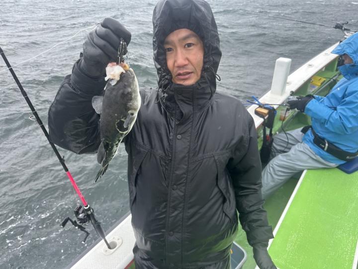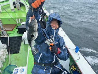 大雨風予報にも大勢のお客様にお集まり感謝出船!! 近場でかたく!か?迷いながらも少しでも風影になる深場のポイントへGO!