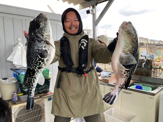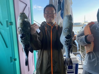 釣れるショウサイフグは中型〜大型でこの時期の身は極上ですよー。