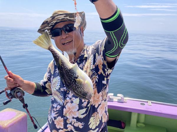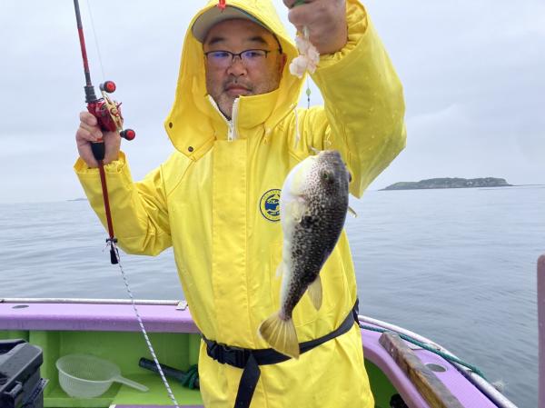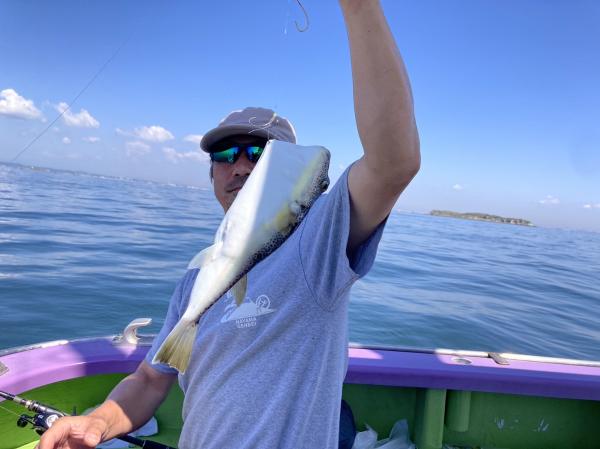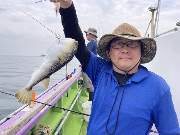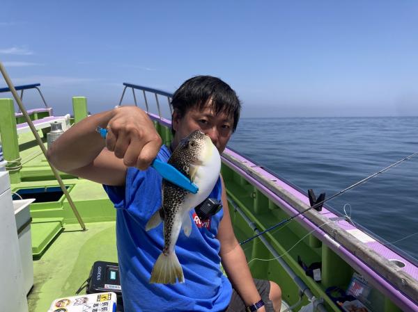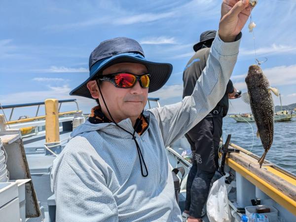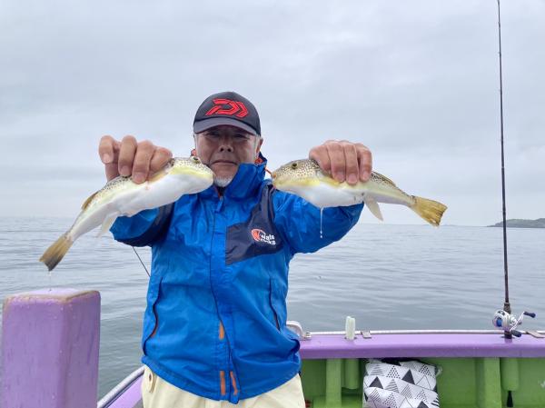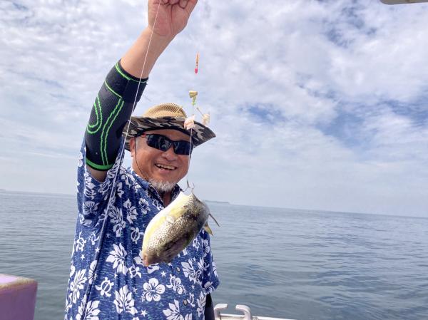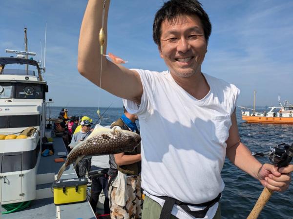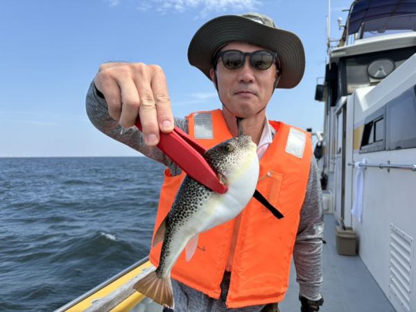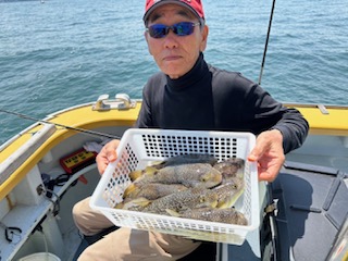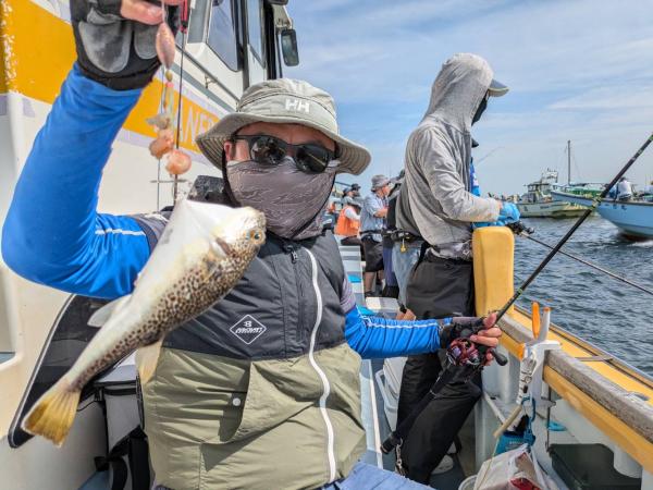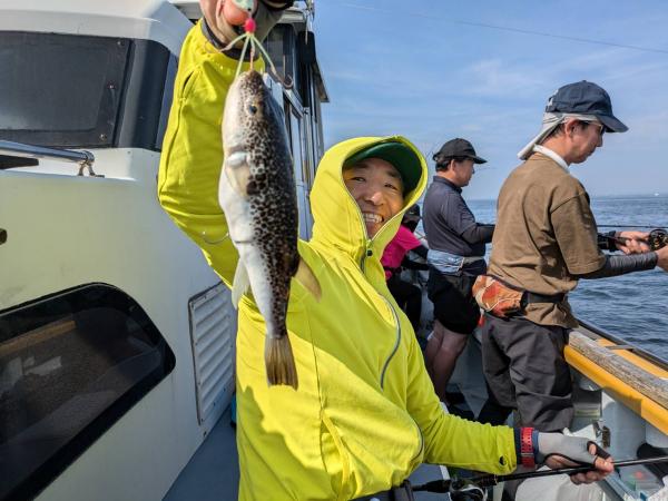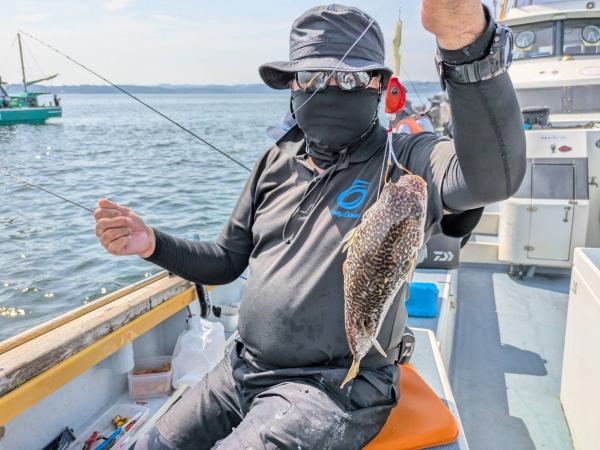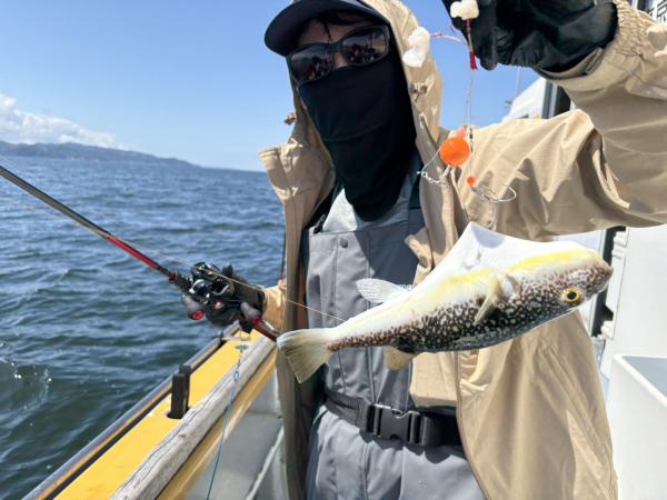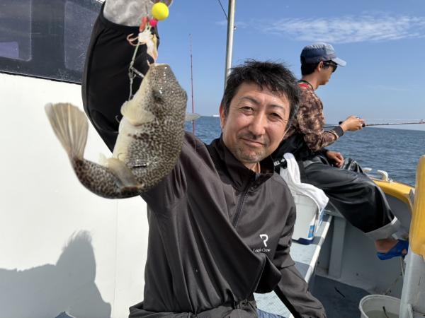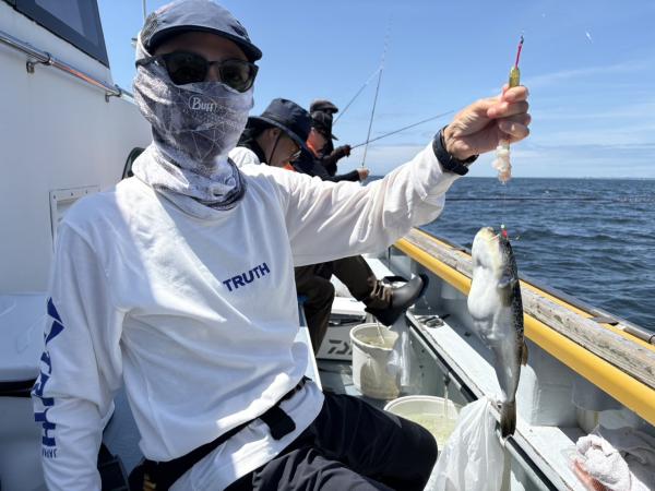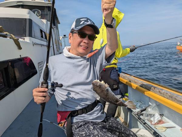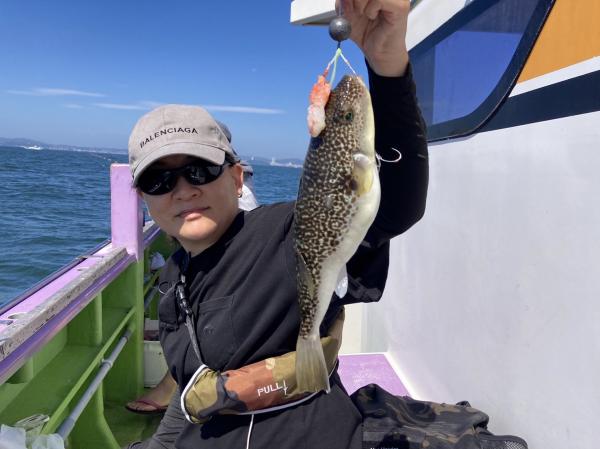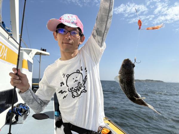 今日は1日僚船の周辺で反応見つけポツンポツンと型を見れました。良い反応になると3〜4人同時に釣れたり、ショウサイフグのダブルがあったりと皆様より船長が大興奮。釣れなくなるとまた反応を探しての繰り返しでした。