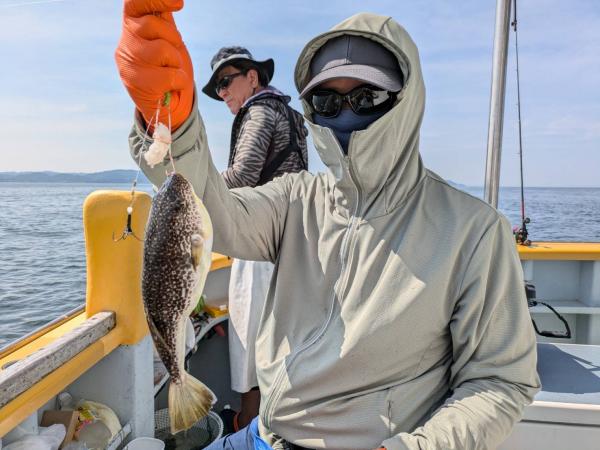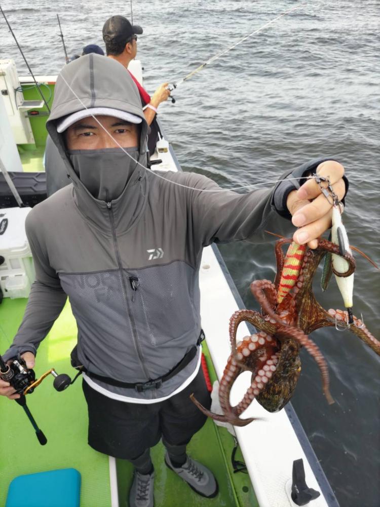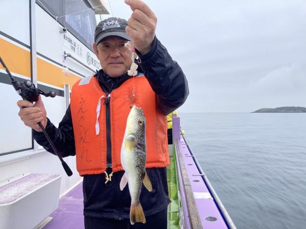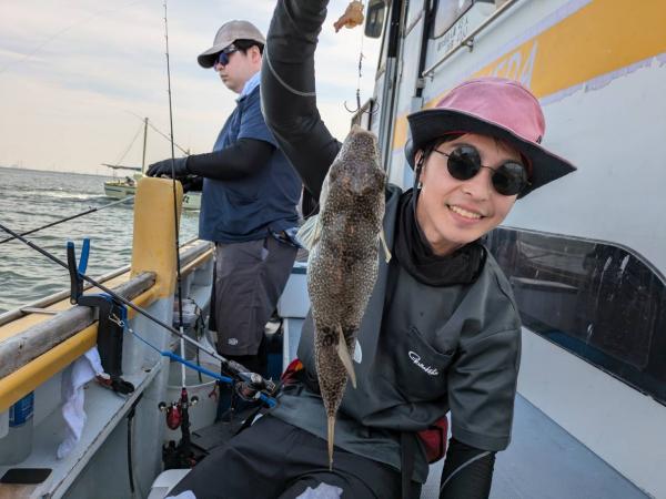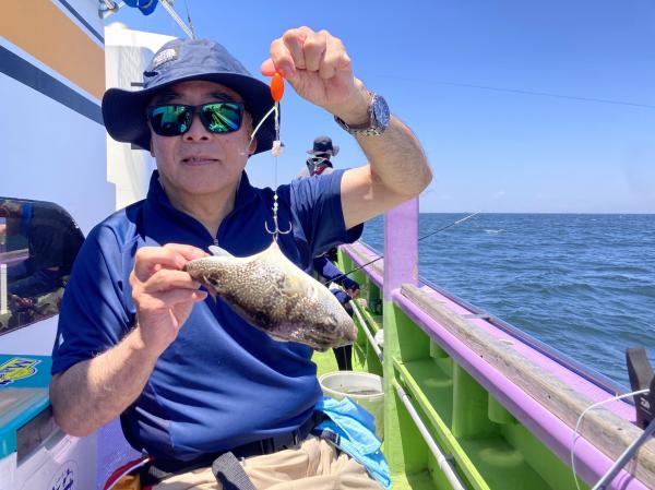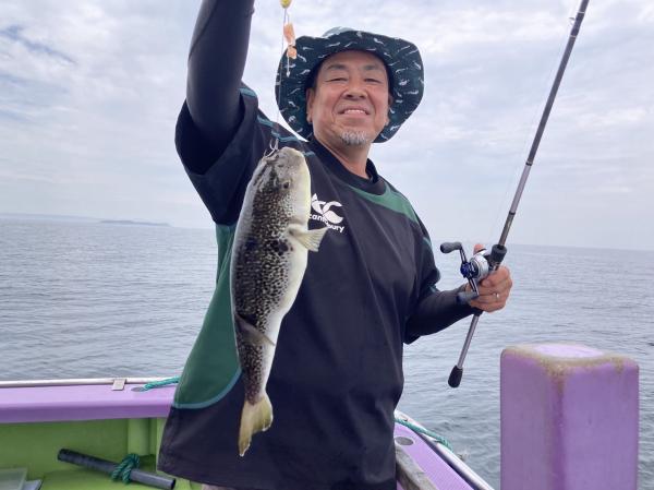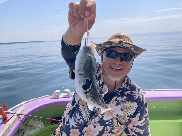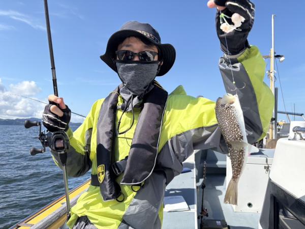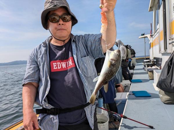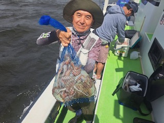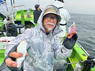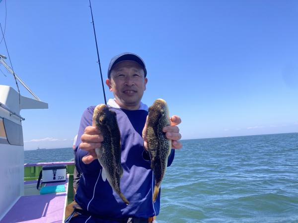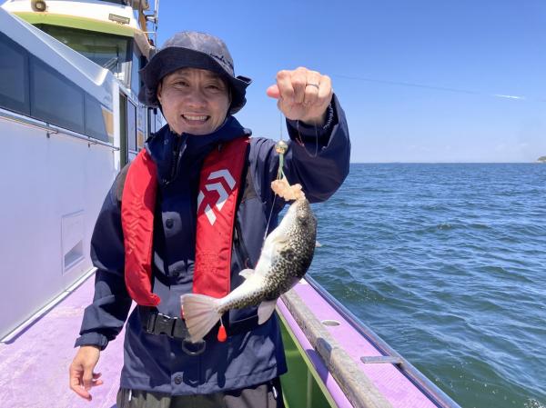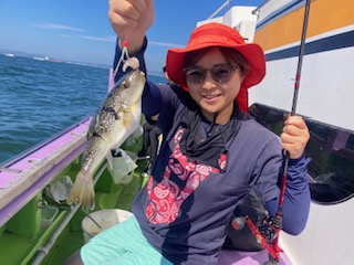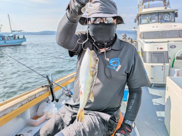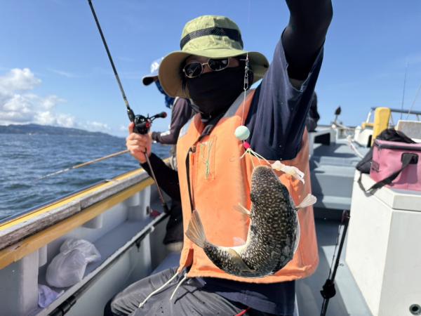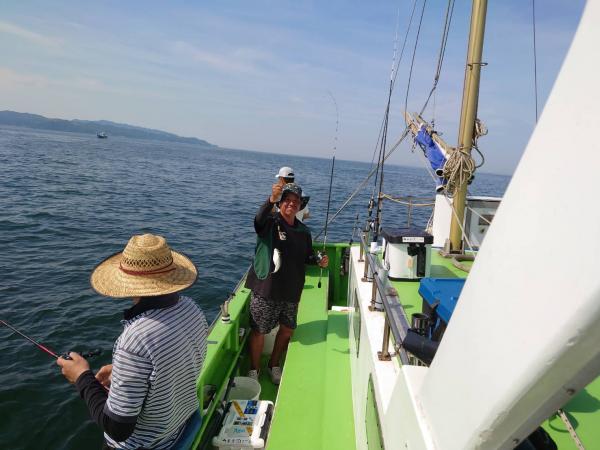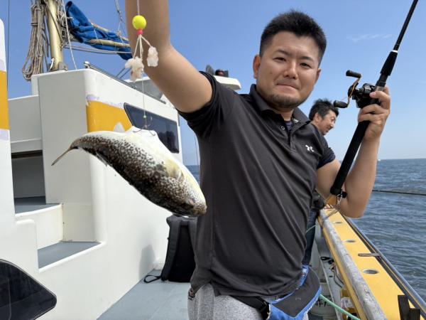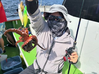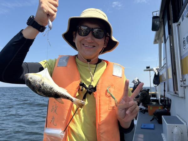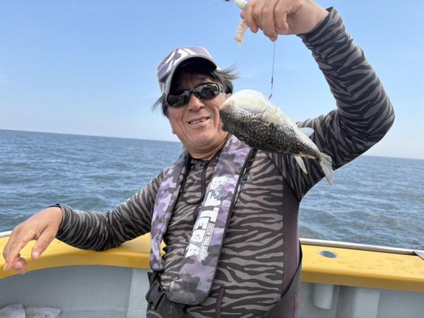 今日は1日僚船の周辺で反応見つけポツンポツンと型を見れました。良い反応になると3〜4人同時に釣れたり、ショウサイフグのダブルがあったりと皆様より船長が大興奮。釣れなくなるとまた反応を探しての繰り返しでした。