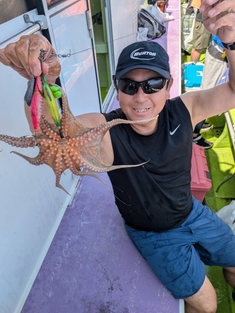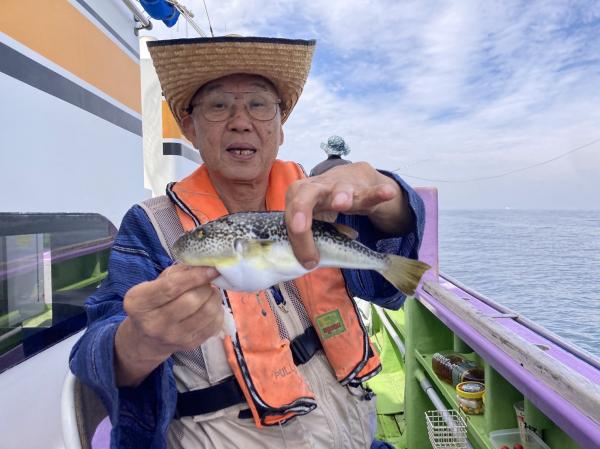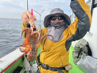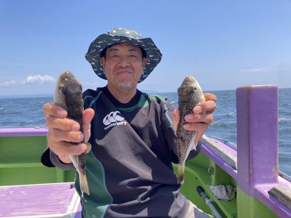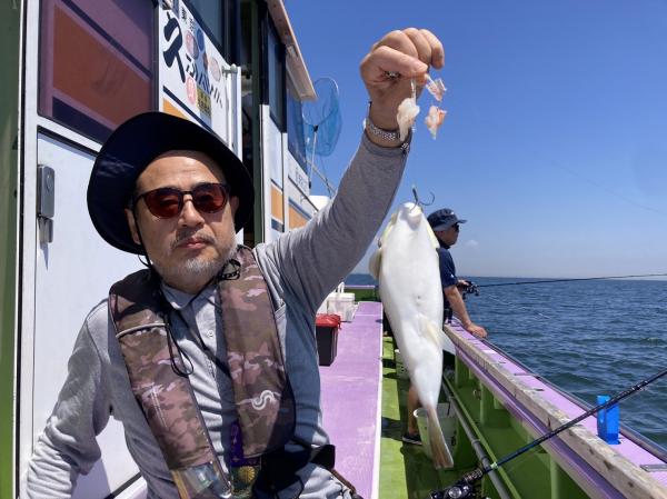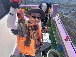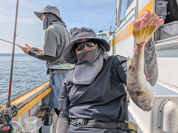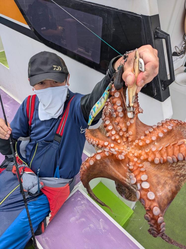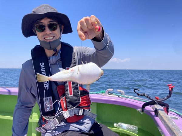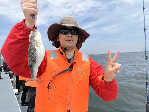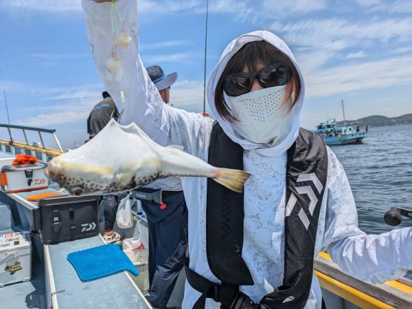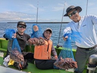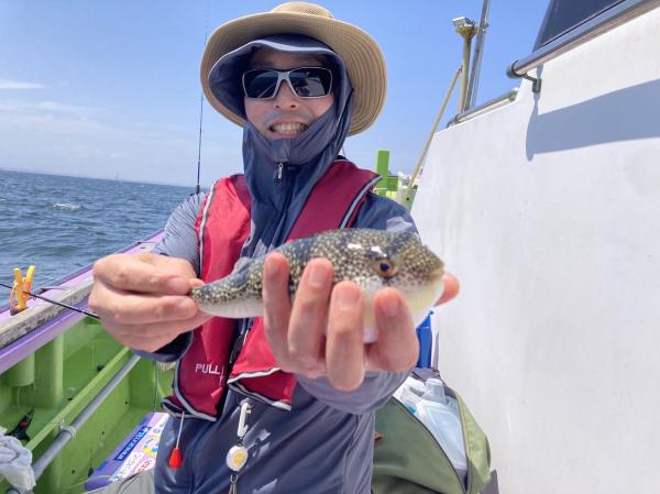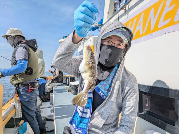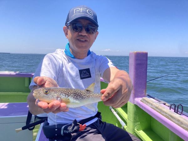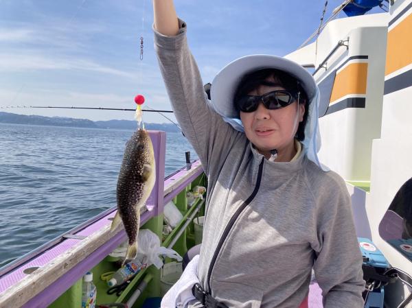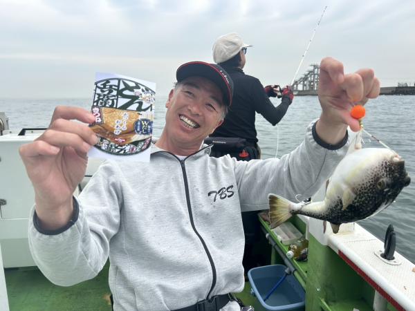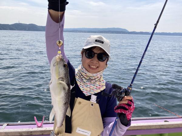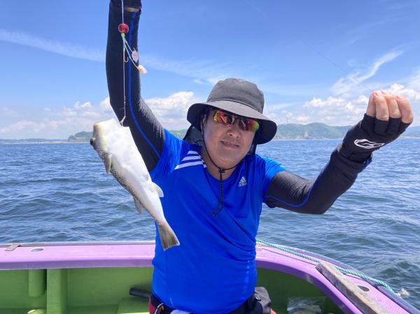 今日は1日僚船の周辺で反応見つけポツンポツンと型を見れました。良い反応になると3〜4人同時に釣れたり、ショウサイフグのダブルがあったりと皆様より船長が大興奮。釣れなくなるとまた反応を探しての繰り返しでした。