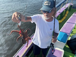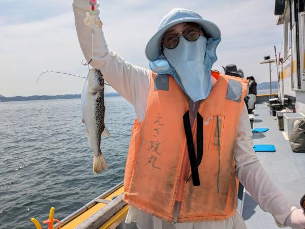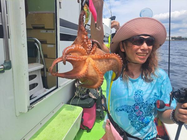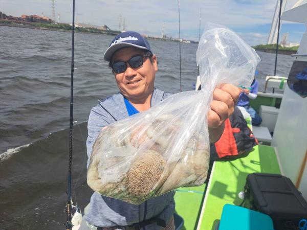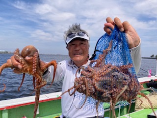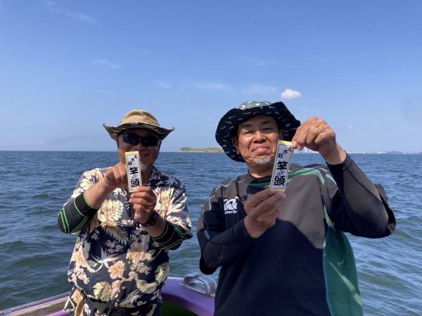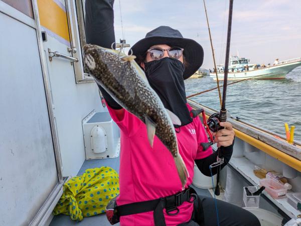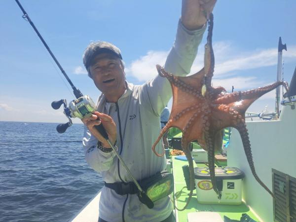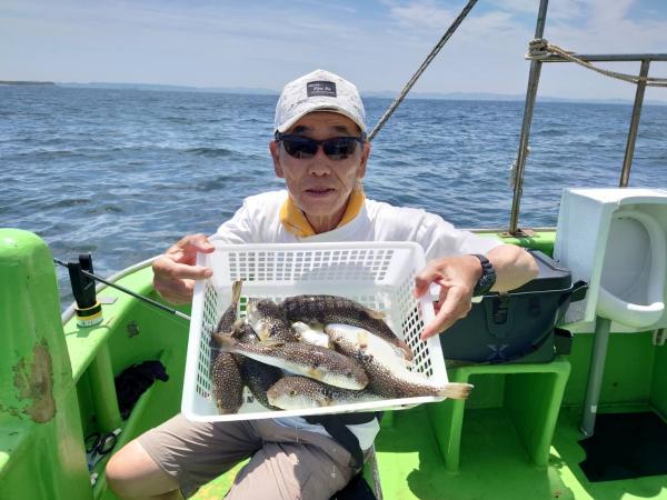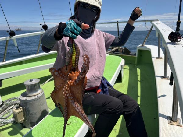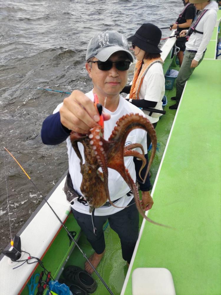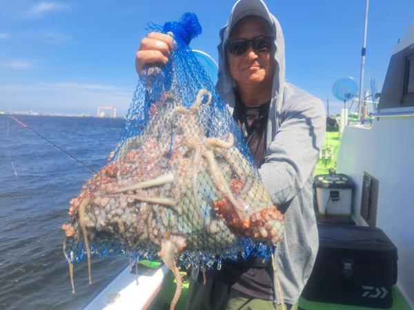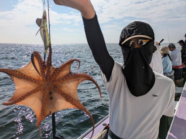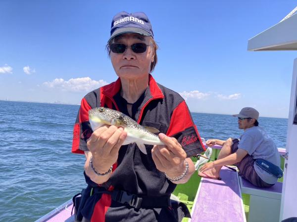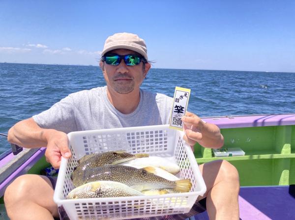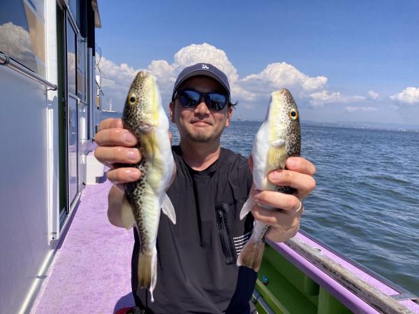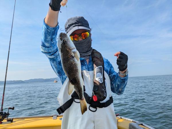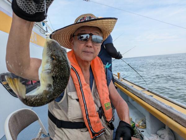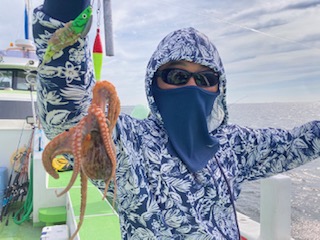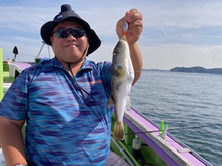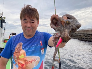 今日は1日僚船の周辺で反応見つけポツンポツンと型を見れました。良い反応になると3〜4人同時に釣れたり、ショウサイフグのダブルがあったりと皆様より船長が大興奮。釣れなくなるとまた反応を探しての繰り返しでした。