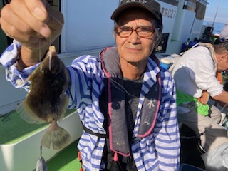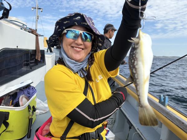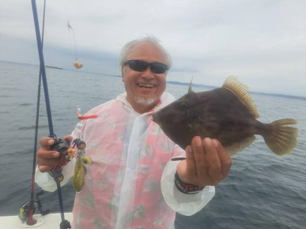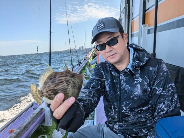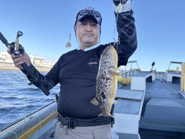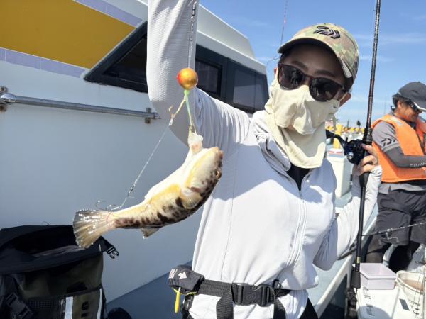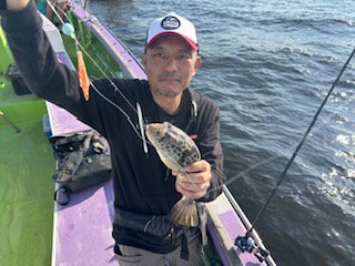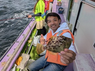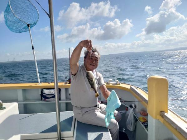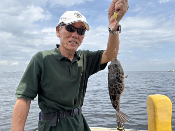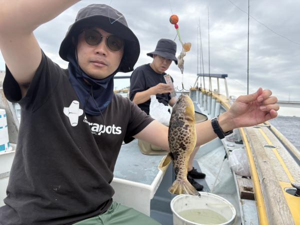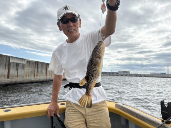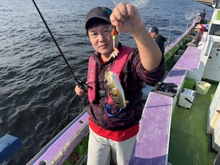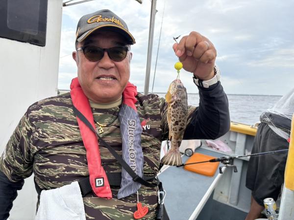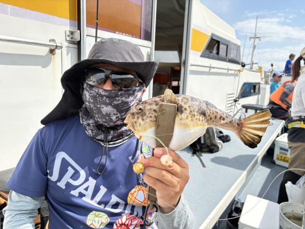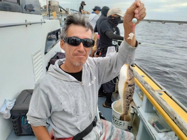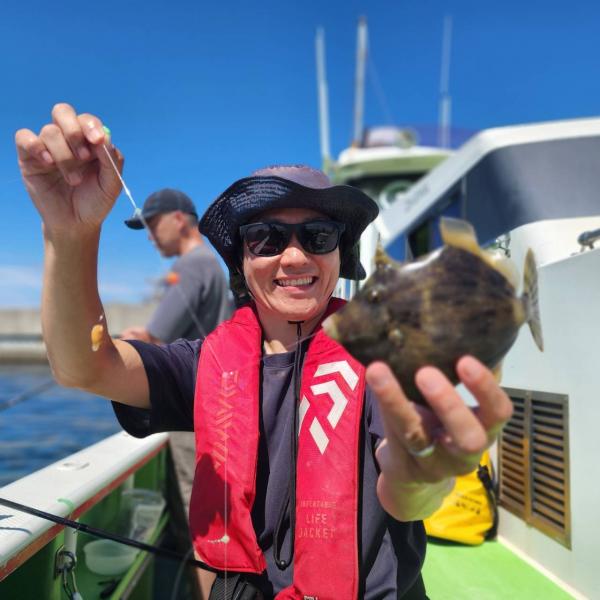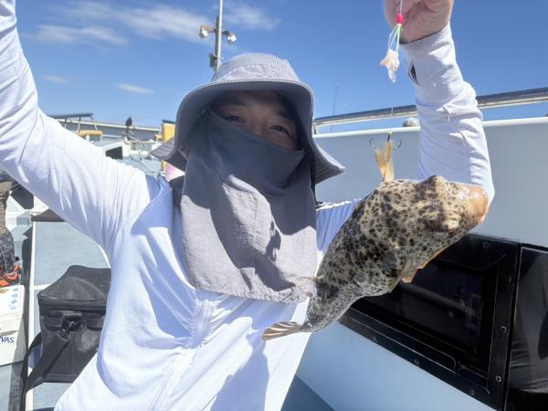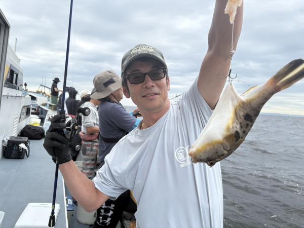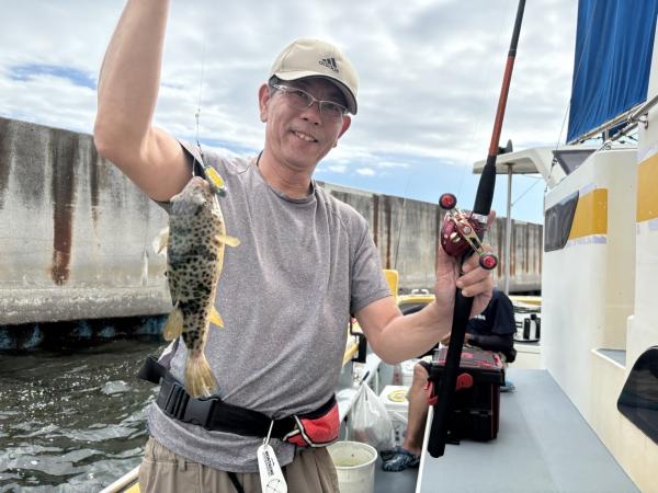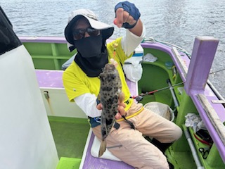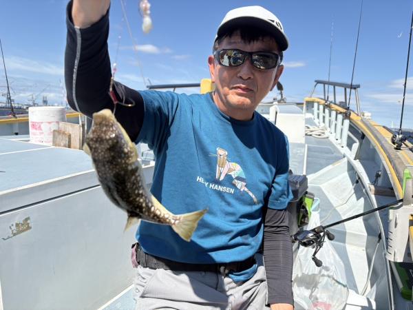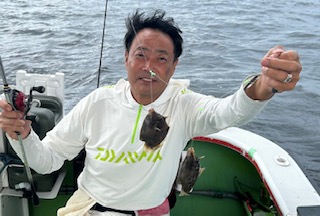 浅場のポイントから様子を伺うと、ポツリポツリと拾い釣り。サバフグ多く、苦戦したが、このポイントは、細かく早い誘いが○!コツを掴んだ方は連発していました。