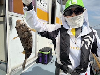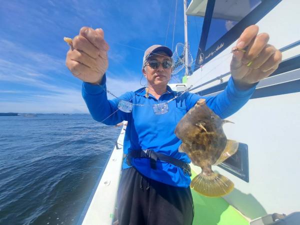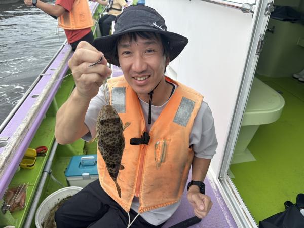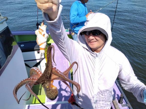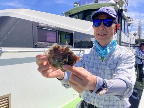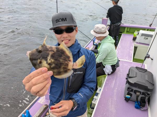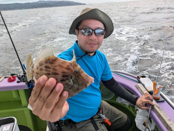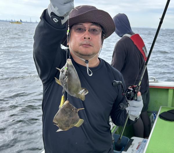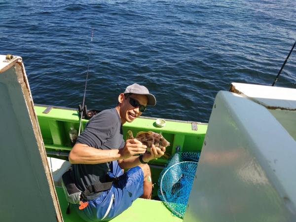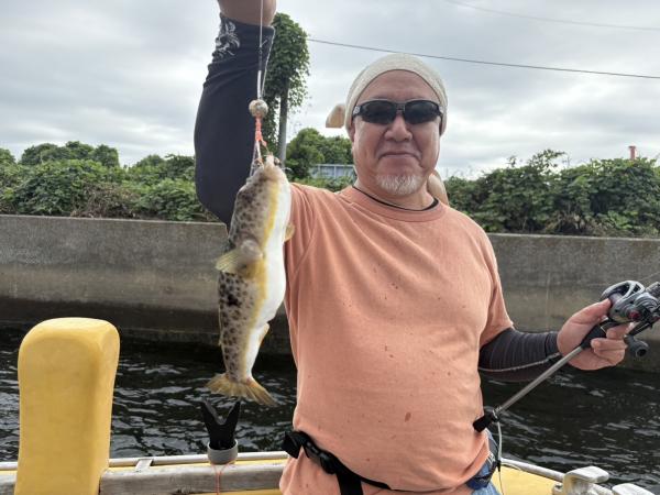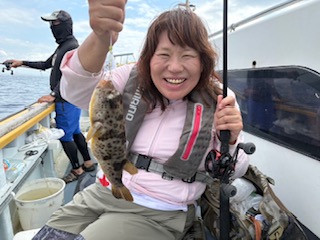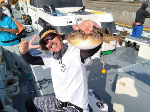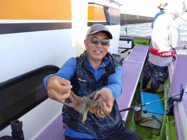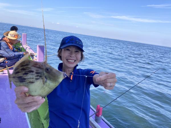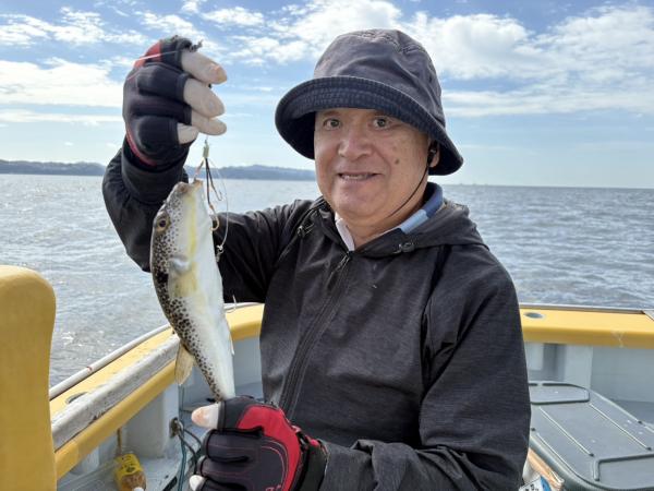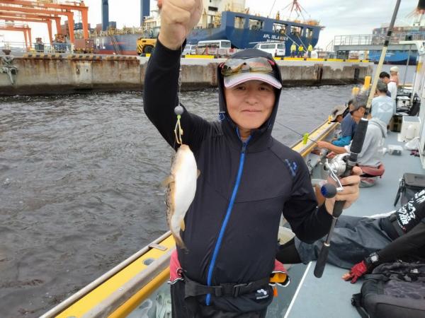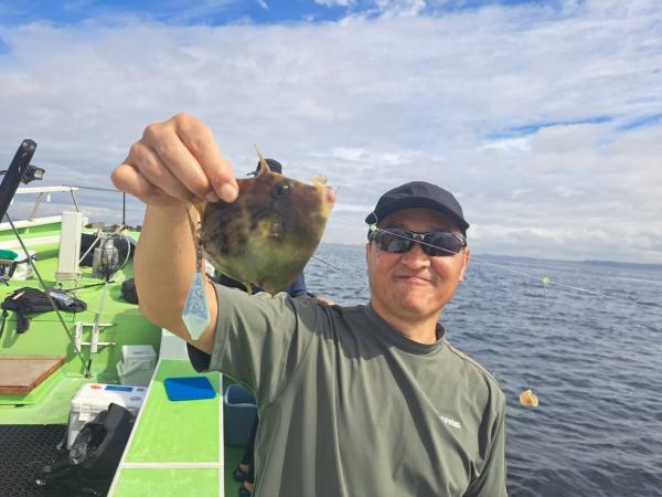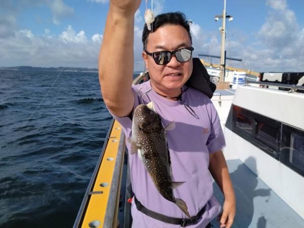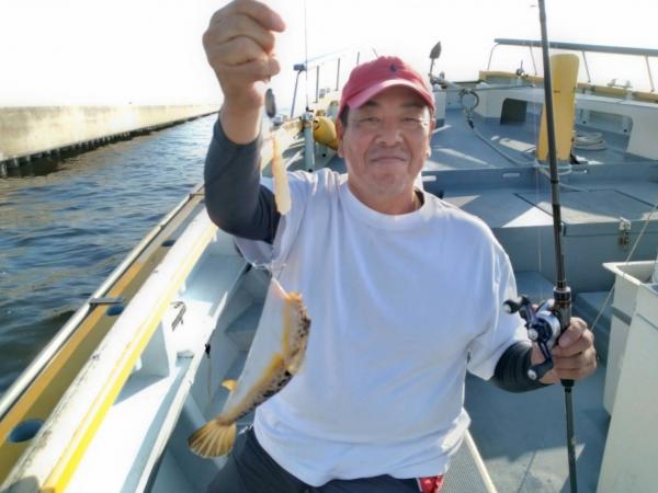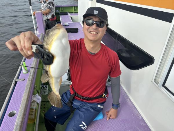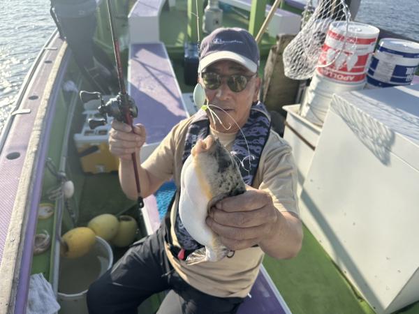 浅場のポイントから様子を伺うと、ポツリポツリと拾い釣り。サバフグ多く、苦戦したが、このポイントは、細かく早い誘いが○!コツを掴んだ方は連発していました。