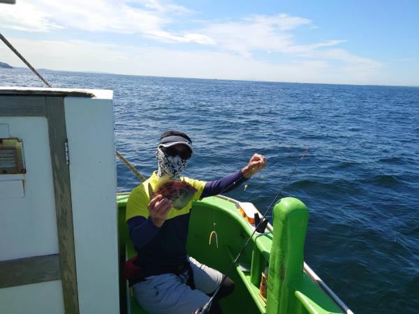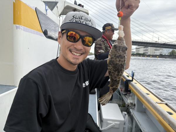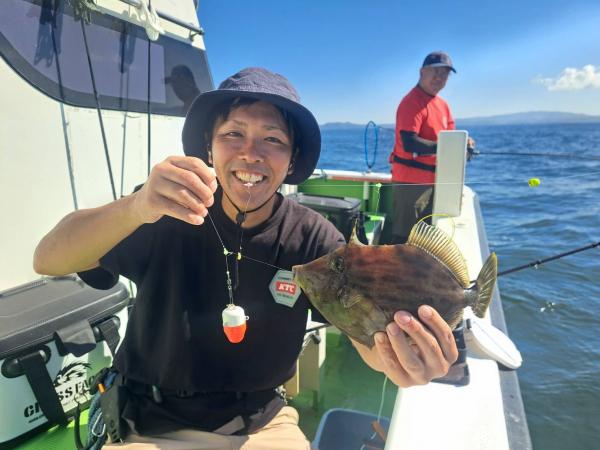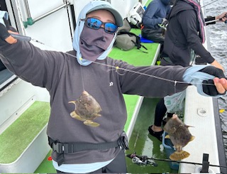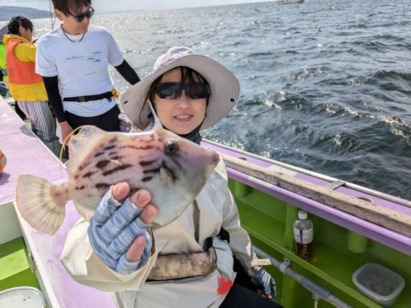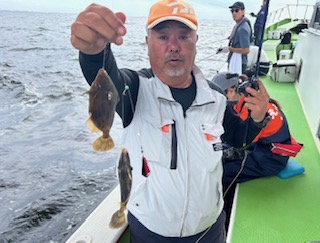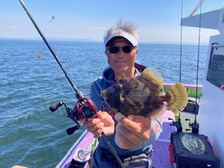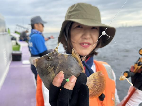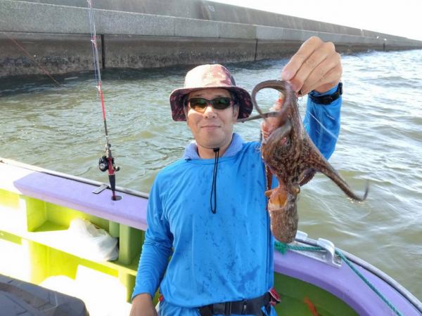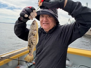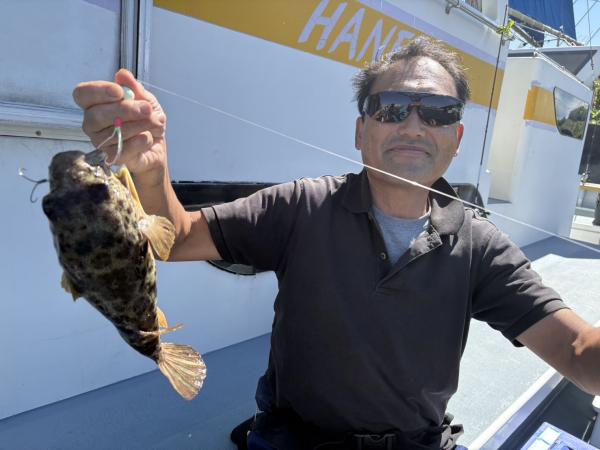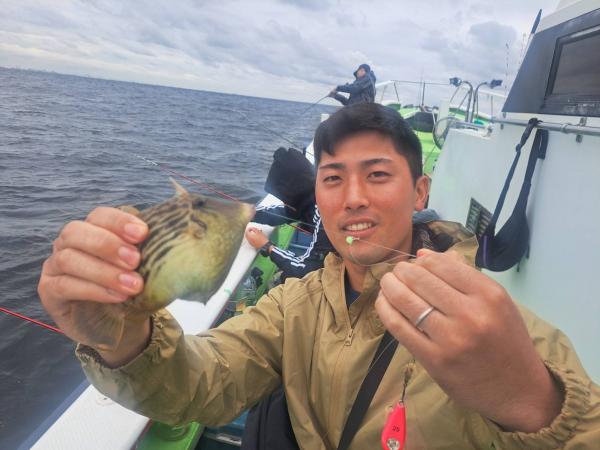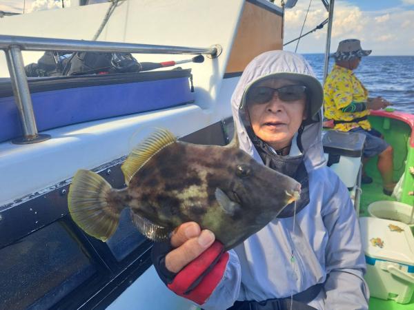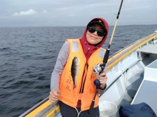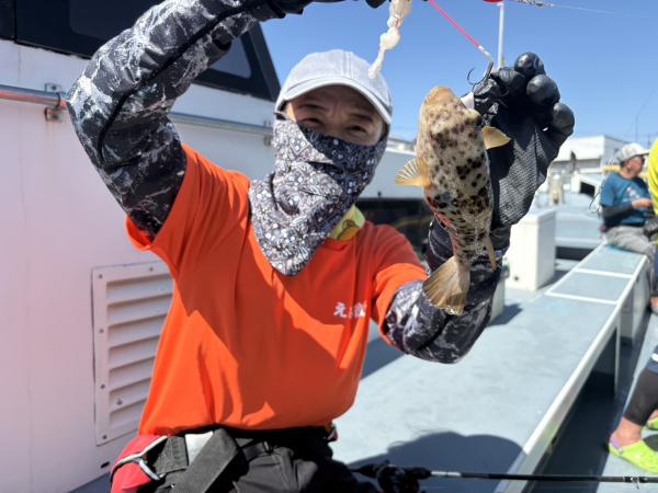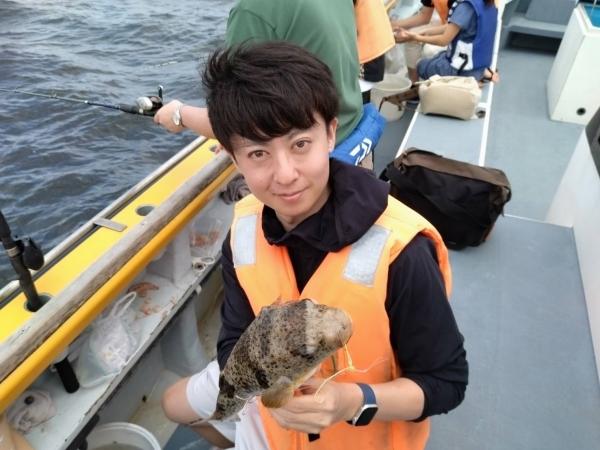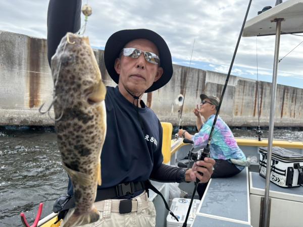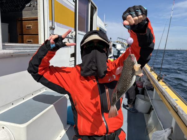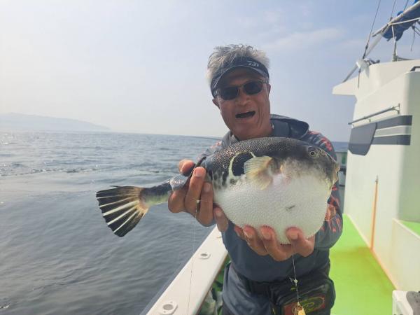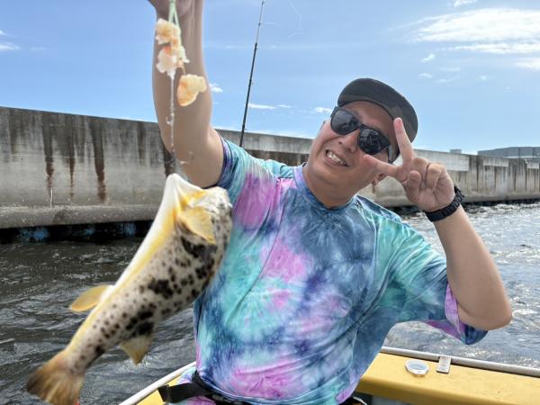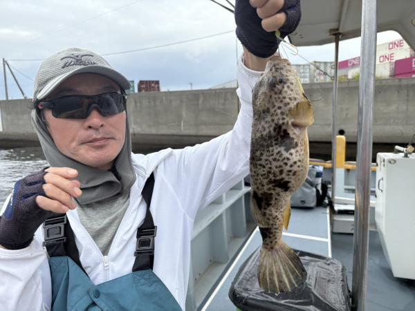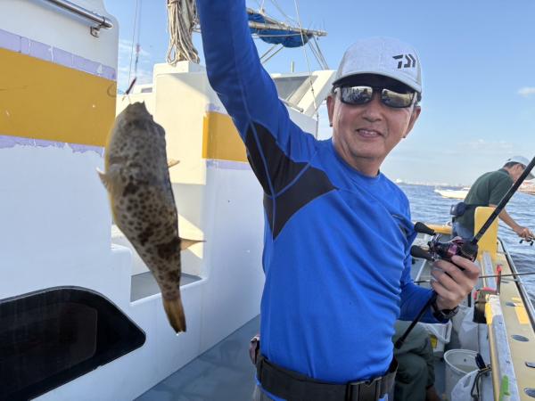 浅場のポイントから様子を伺うと、ポツリポツリと拾い釣り。サバフグ多く、苦戦したが、このポイントは、細かく早い誘いが○!コツを掴んだ方は連発していました。
