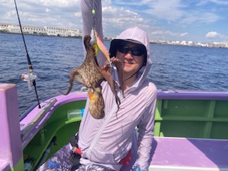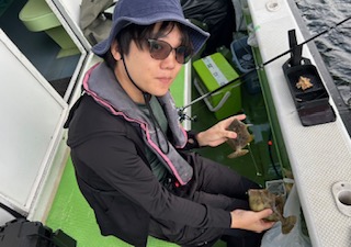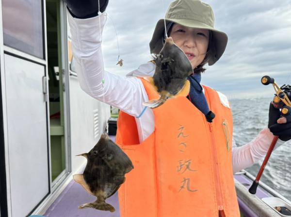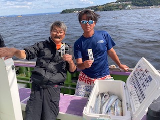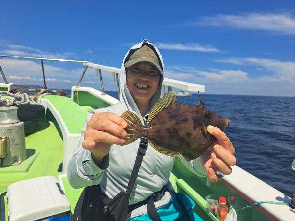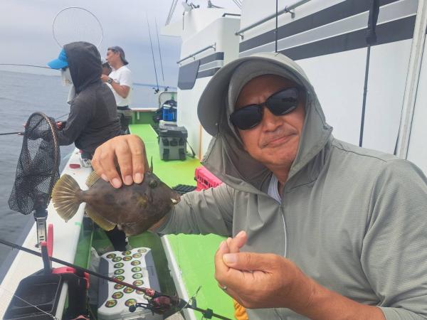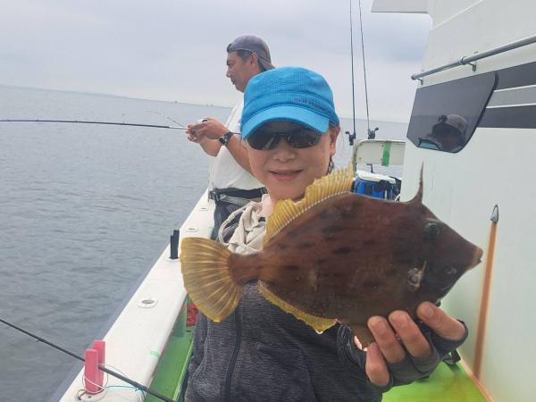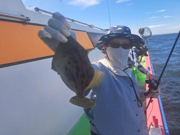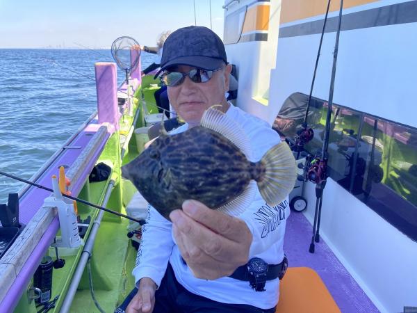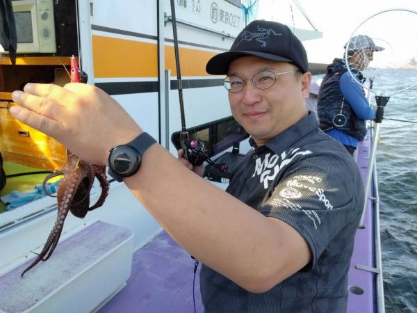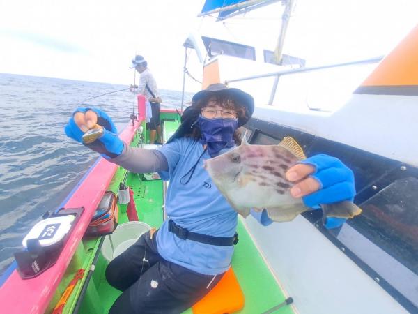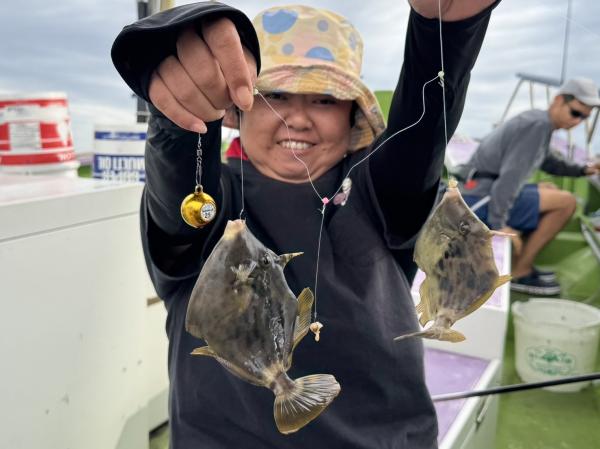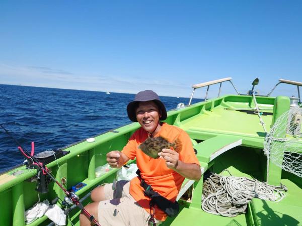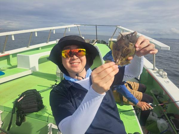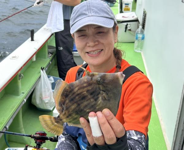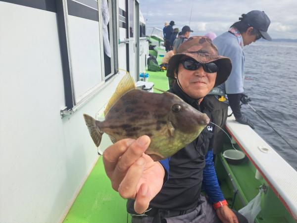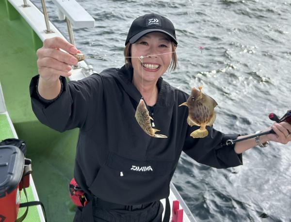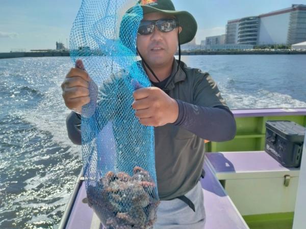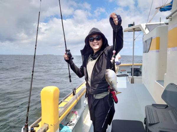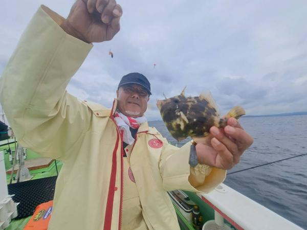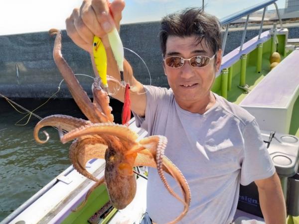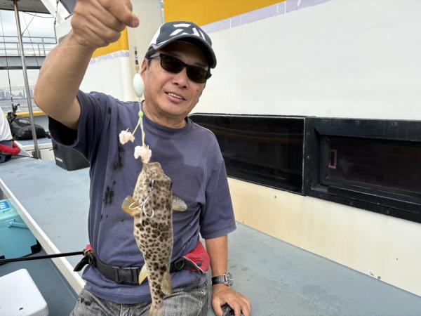 浅場のポイントから様子を伺うと、ポツリポツリと拾い釣り。サバフグ多く、苦戦したが、このポイントは、細かく早い誘いが○!コツを掴んだ方は連発していました。
